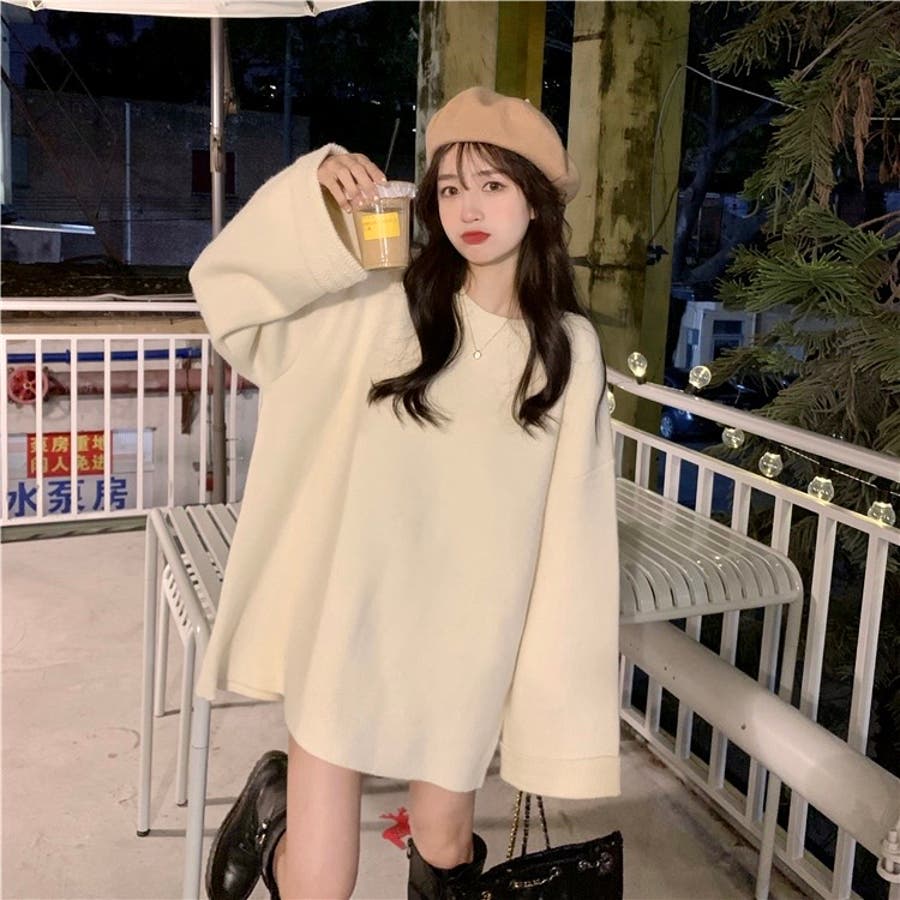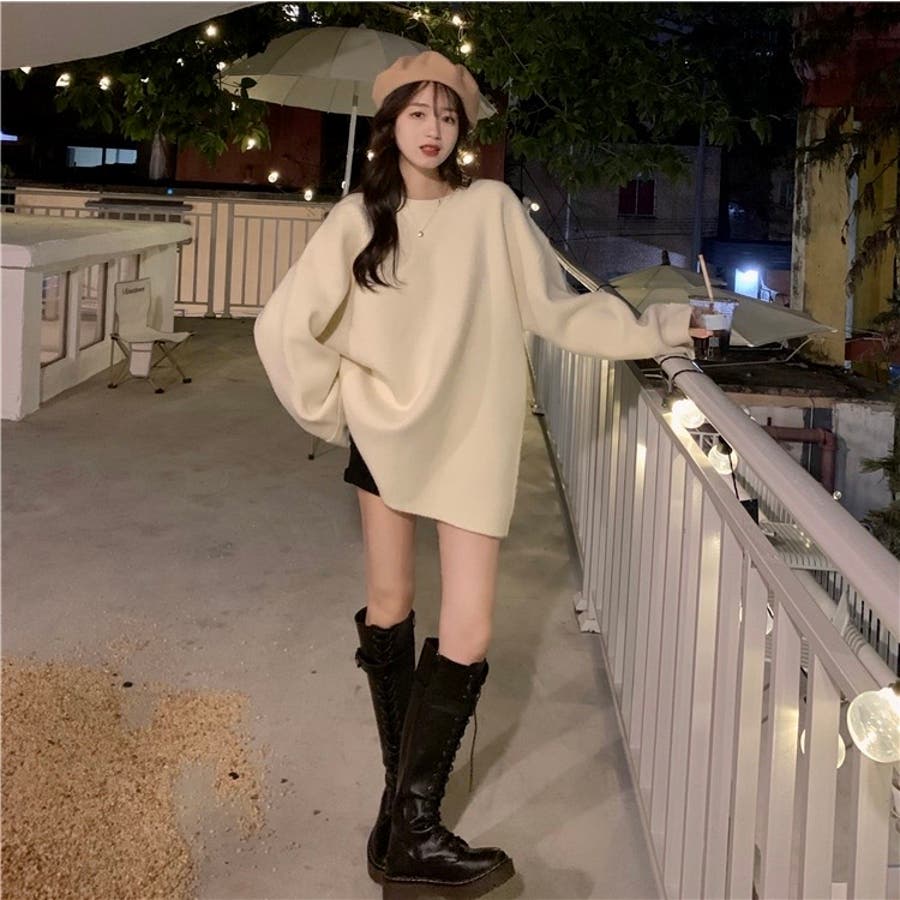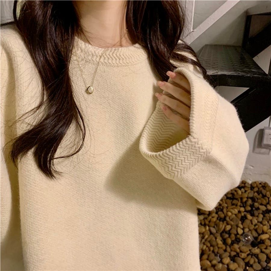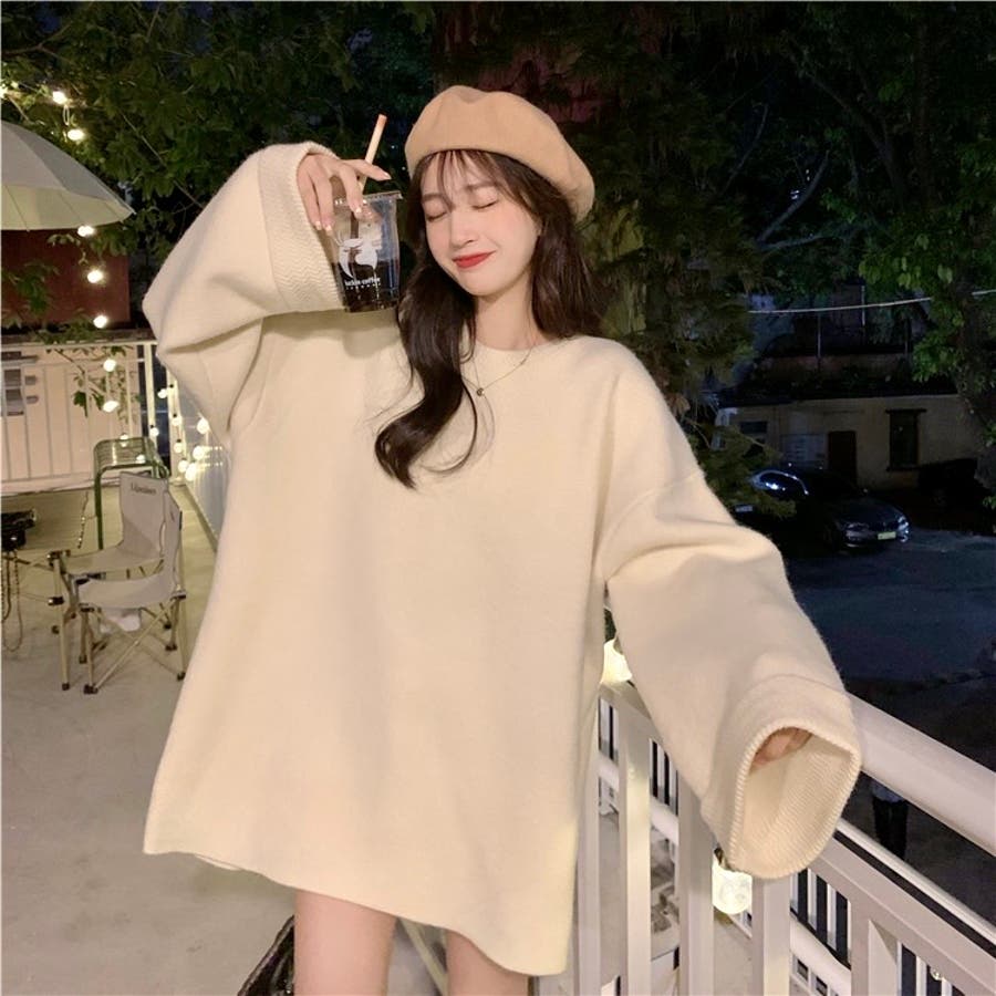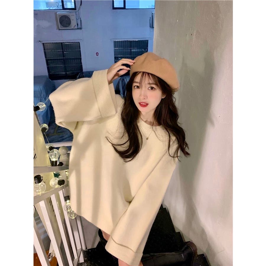 ゆるっとオーバーサイズのシャレ見え。ニットプルオーバー 韓国ファッション ふわふわ