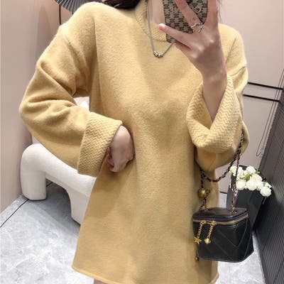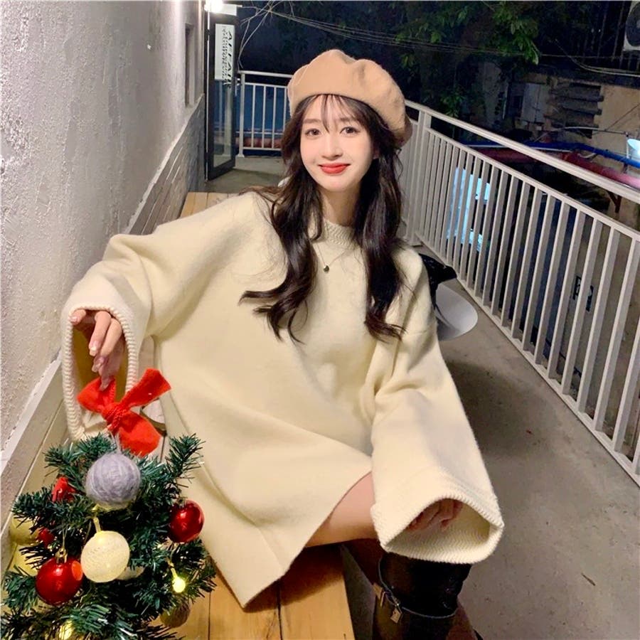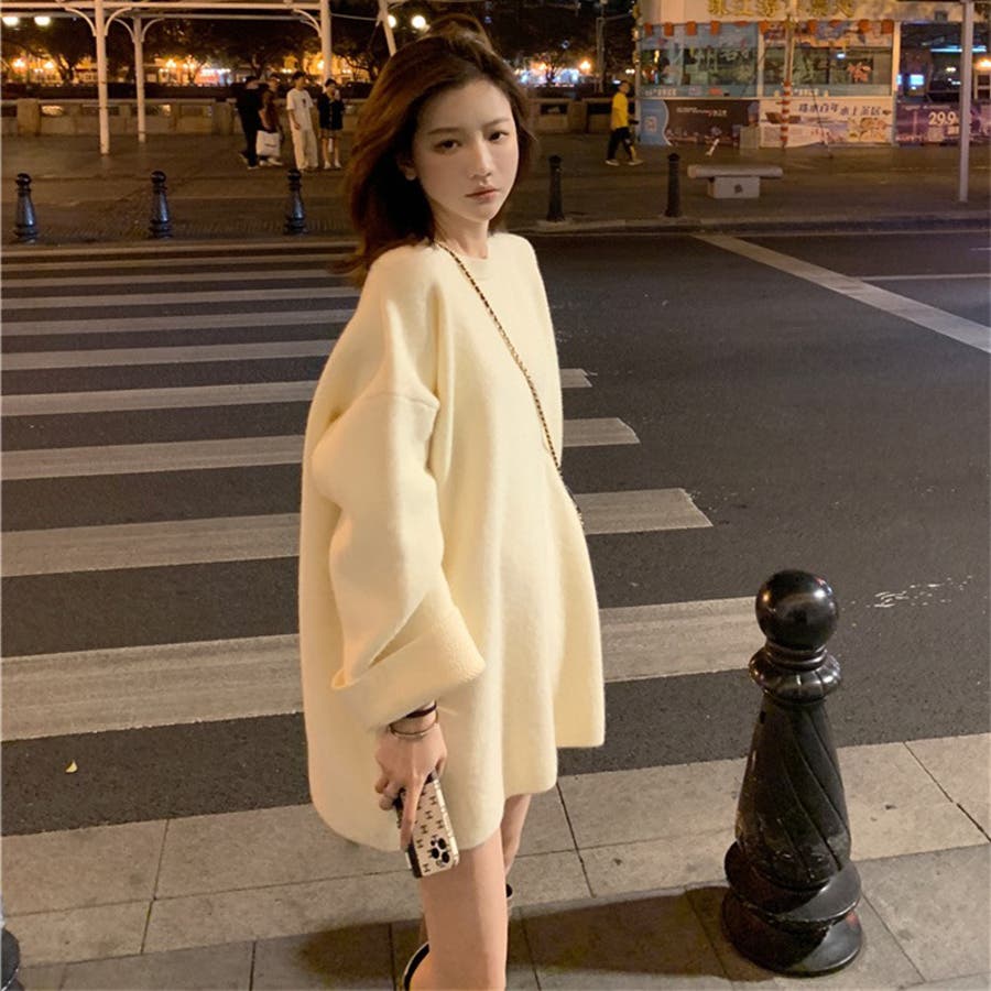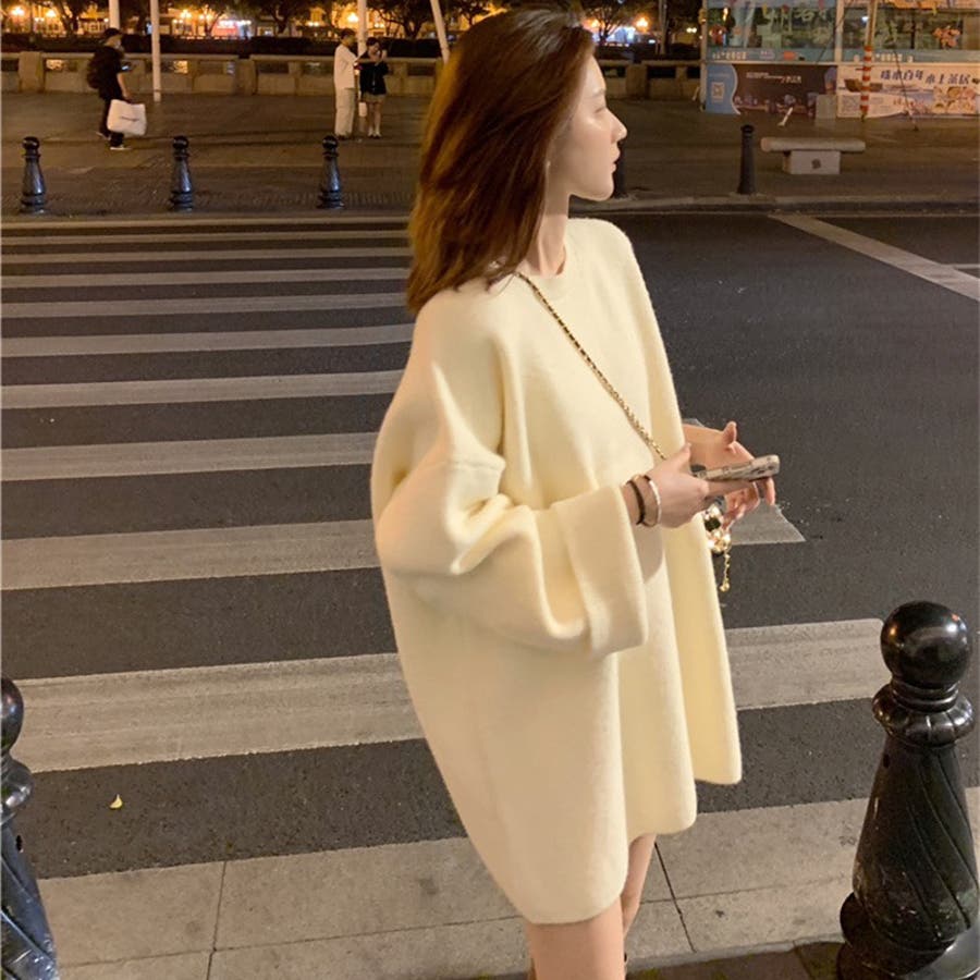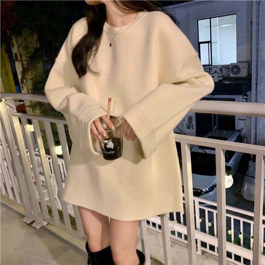 ゆるっとオーバーサイズのシャレ見え。ニットプルオーバー 韓国ファッション ふわふわ