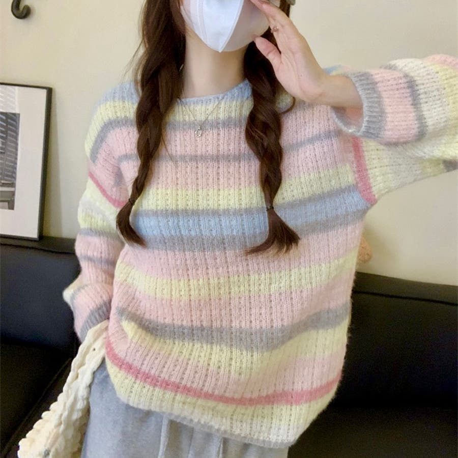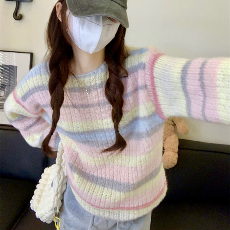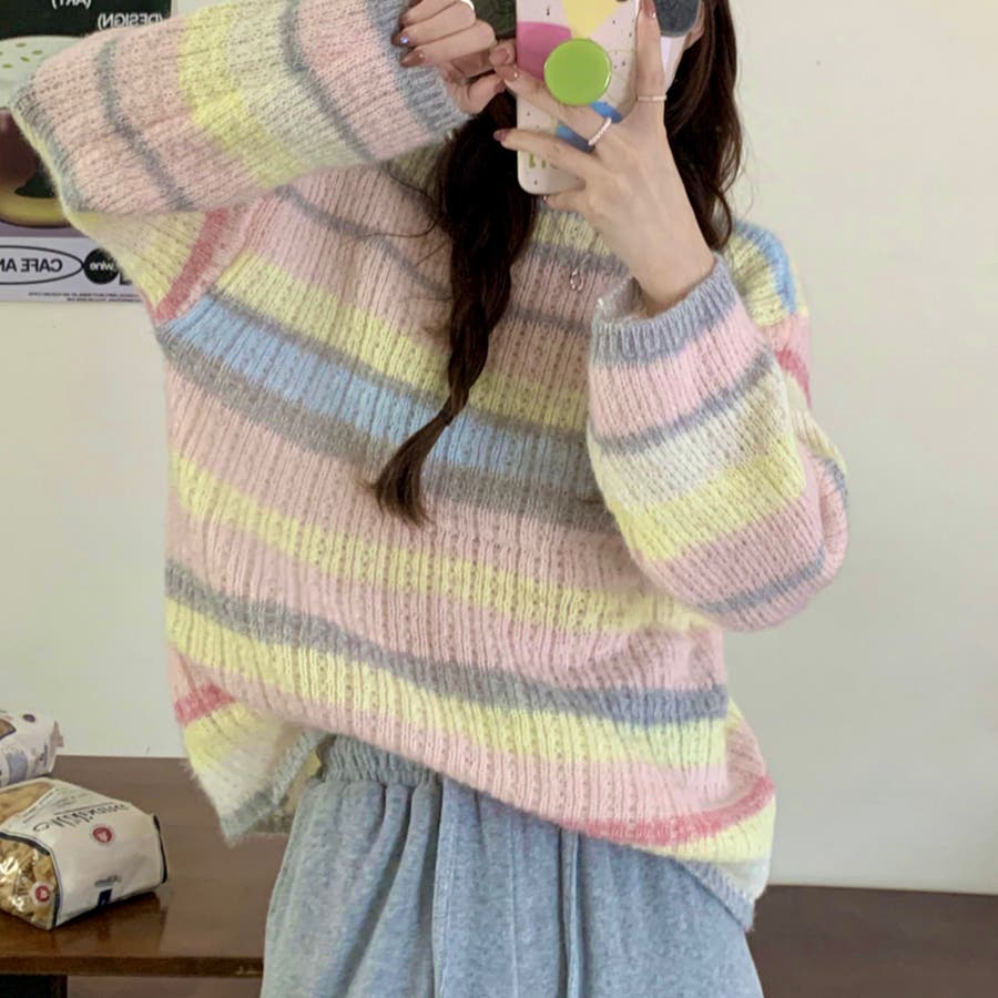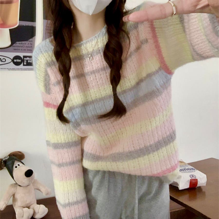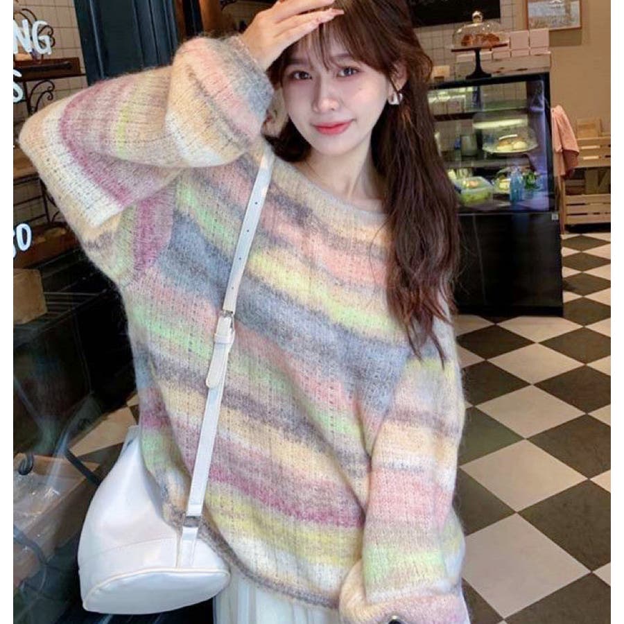 ふわふわグラデーションニットトップ 韓国ファッション ニット