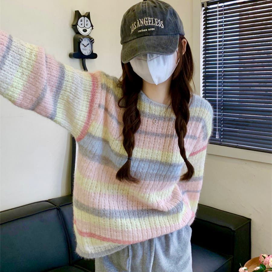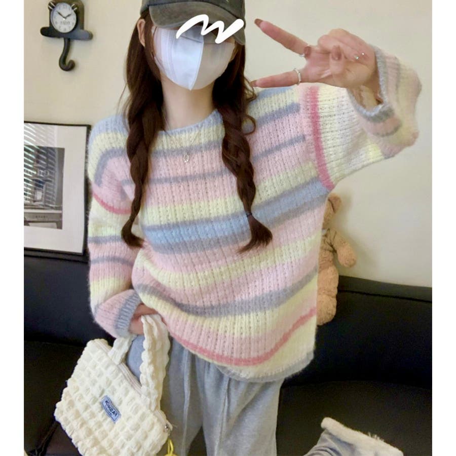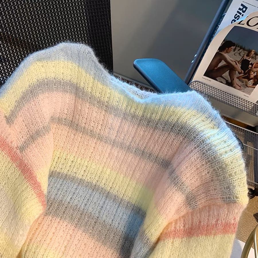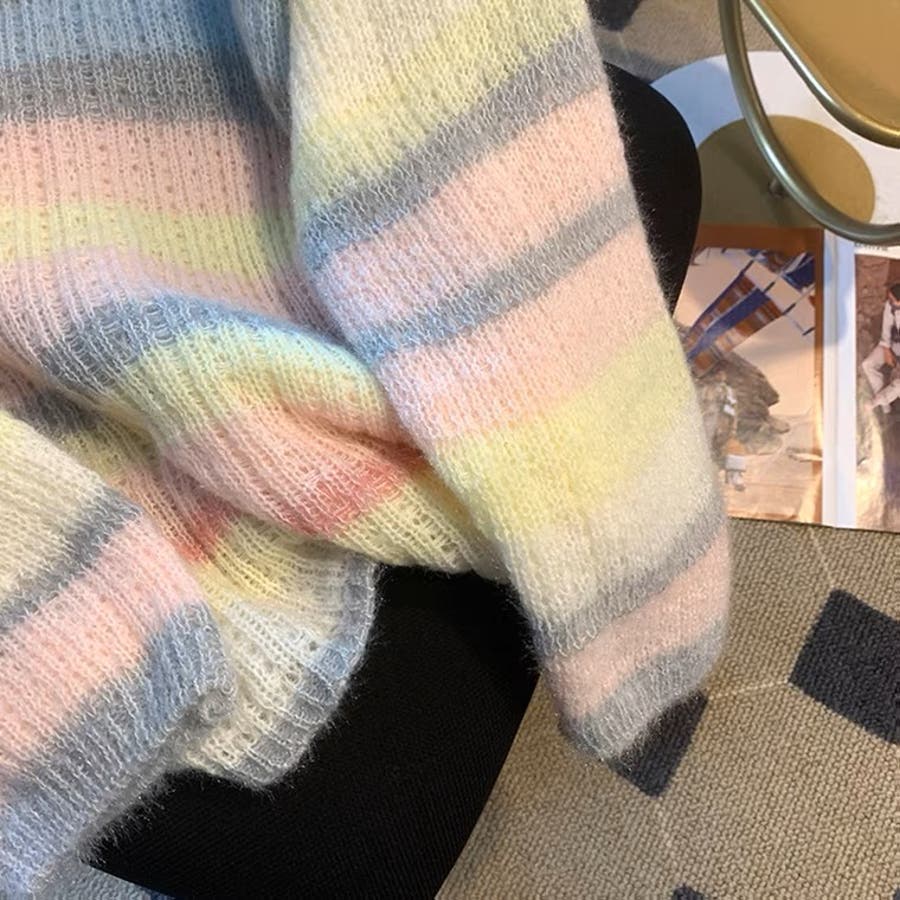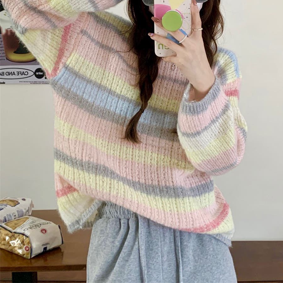ふわふわグラデーションニットトップ 韓国ファッション ニット