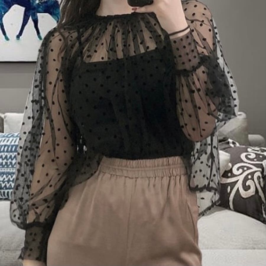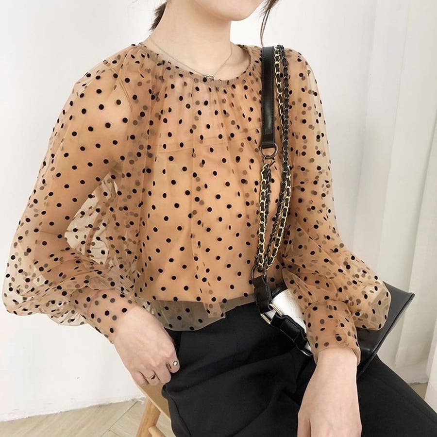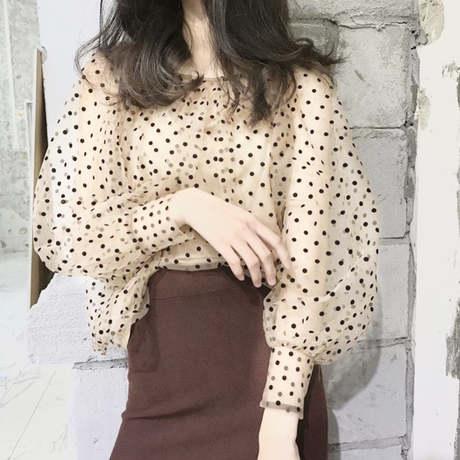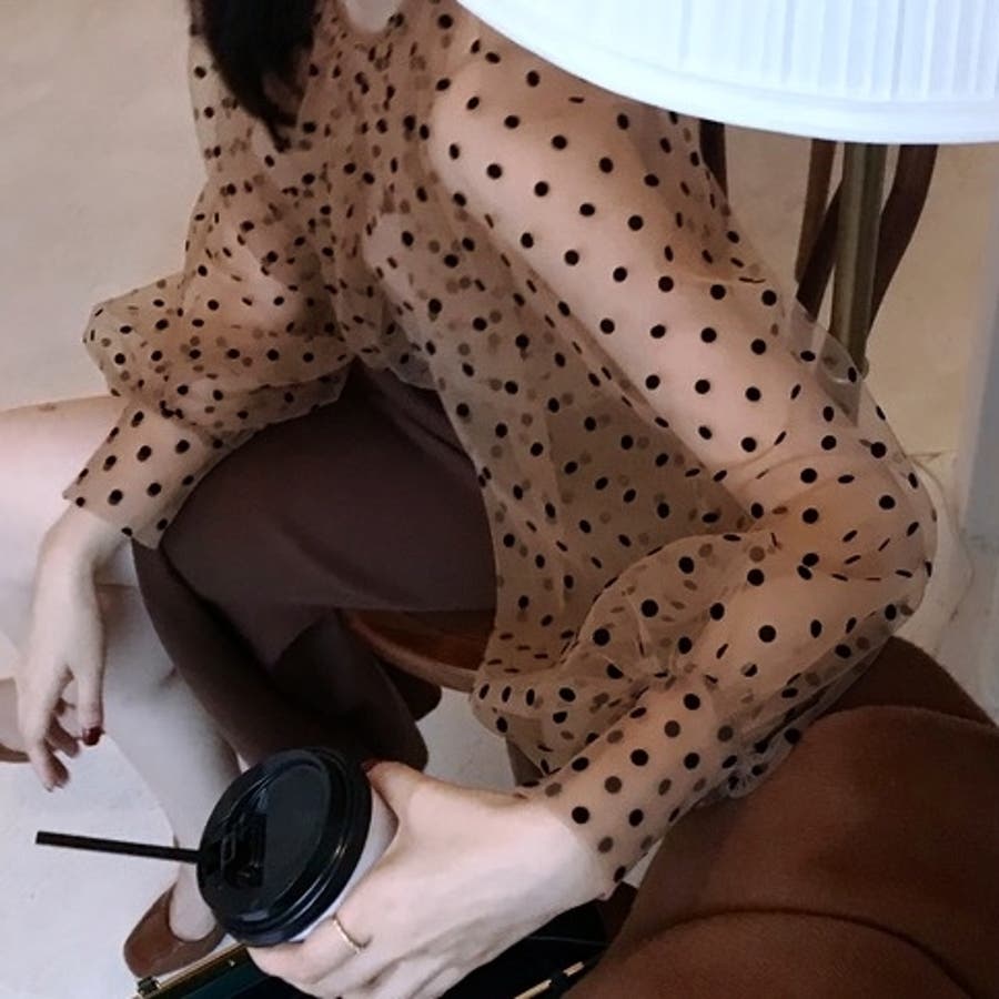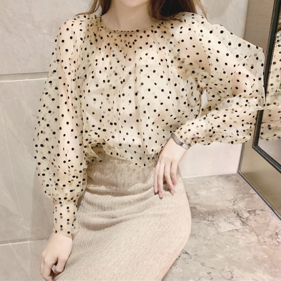 ドット柄のシアーブラウスとインナーキャミソールがセットになったアイテムです★
