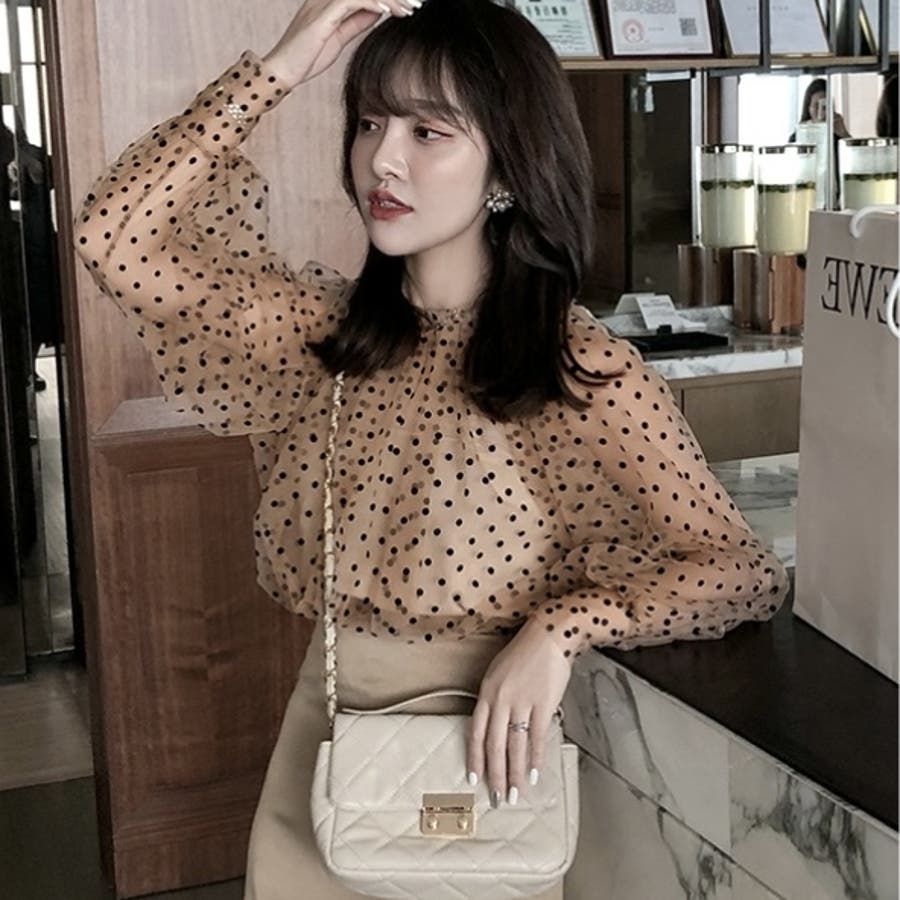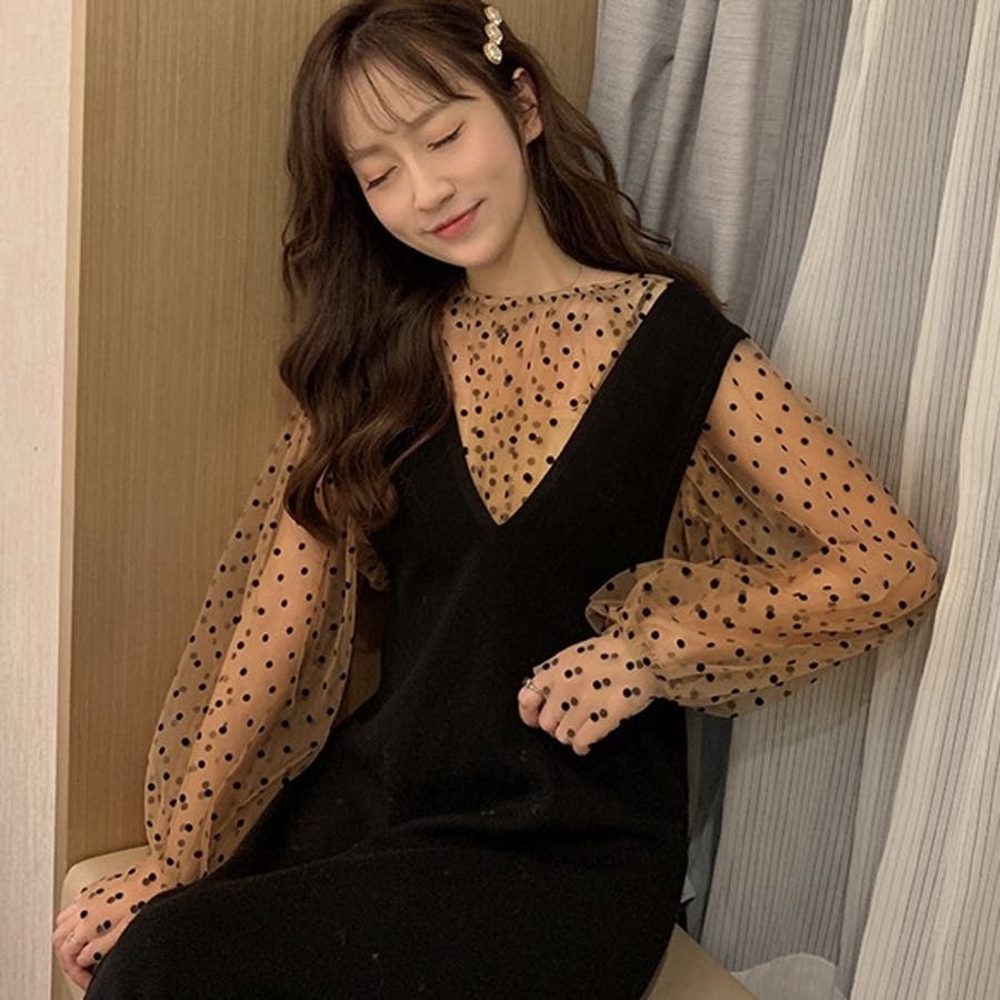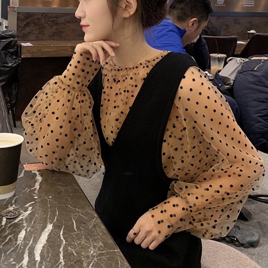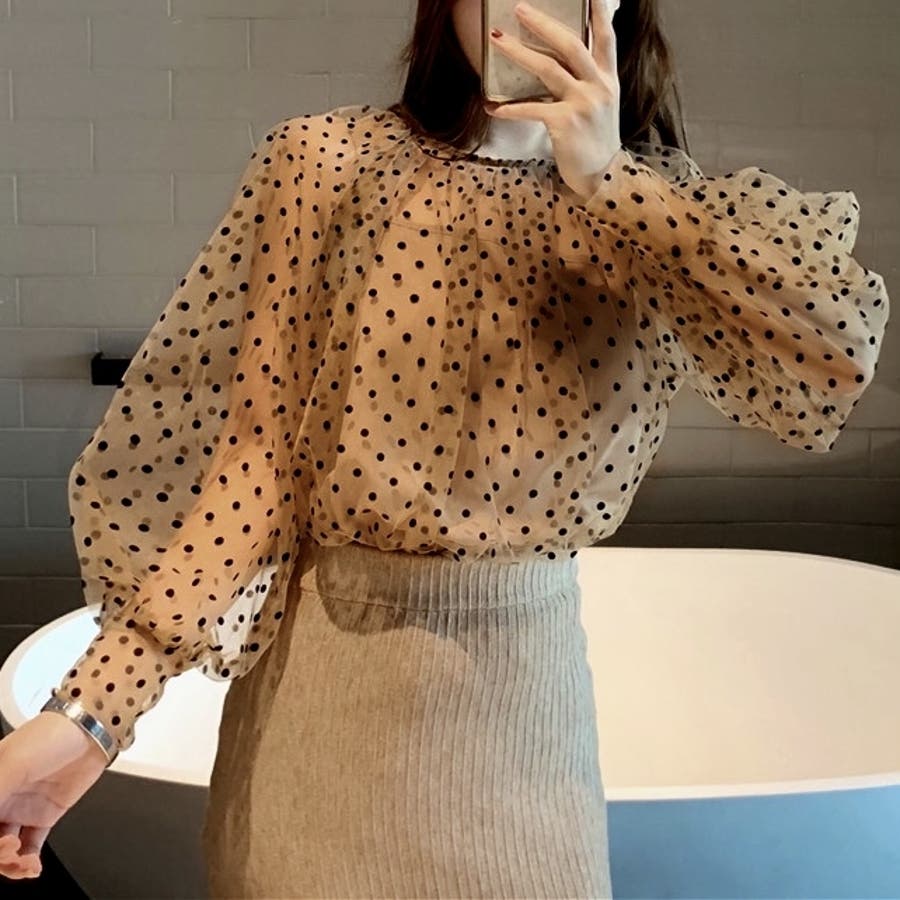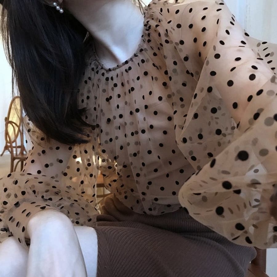 ドット柄のシアーブラウスとインナーキャミソールがセットになったアイテムです★