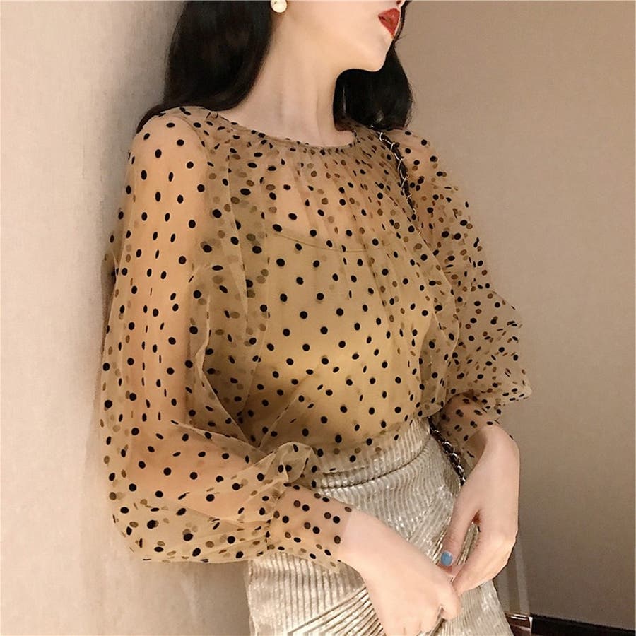 モテ愛されレディに。キャミ付きシアーブラウス 韓国ファッション 夏服