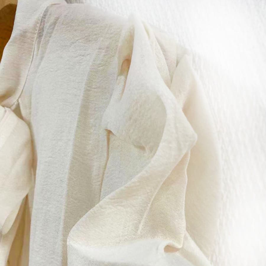 軽くて透け感を存分に味わえるオーガンジー生地を使用し、トレンド感のある1着に仕上げました。