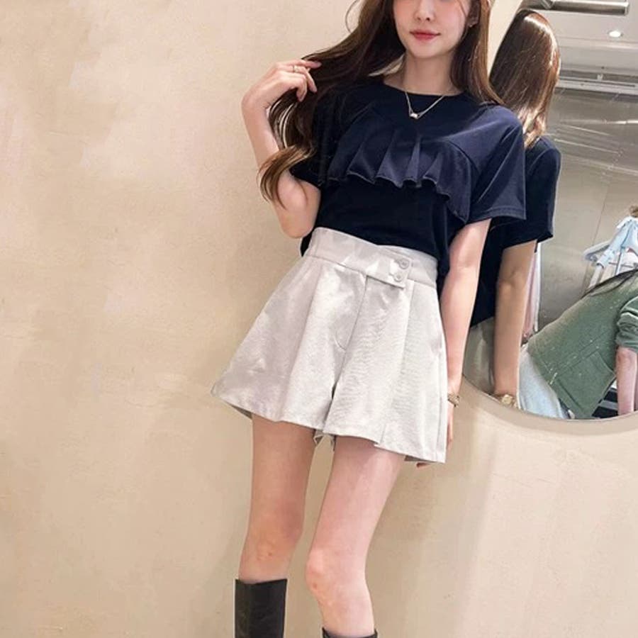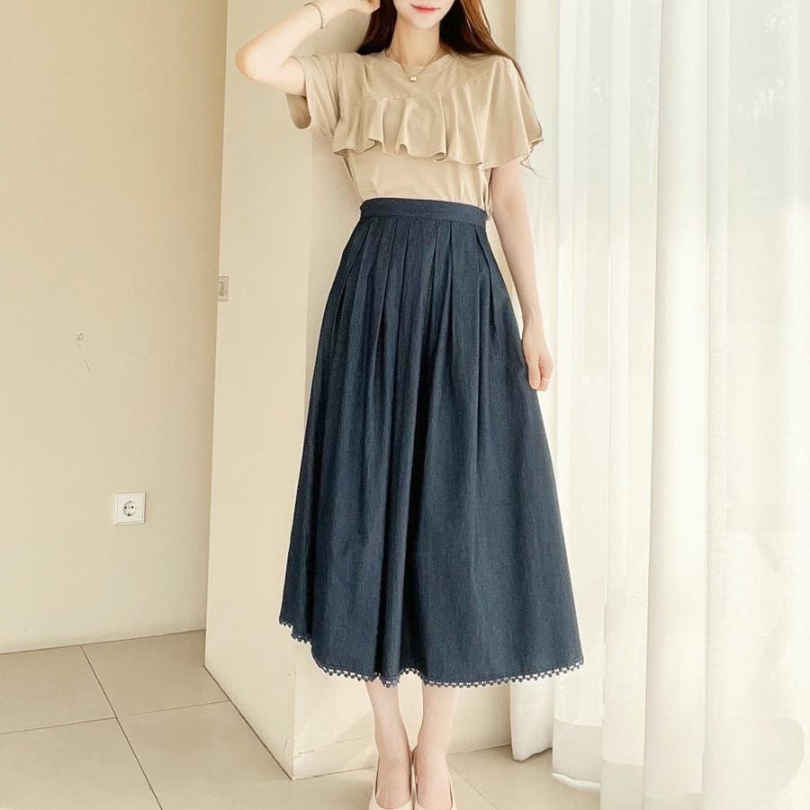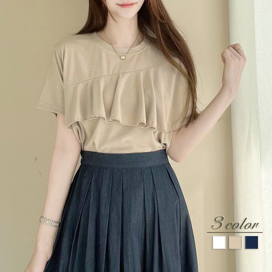 フリルが派手に見えない大人っぽさがあり、生地も伸縮性がいいもので着やすいです。