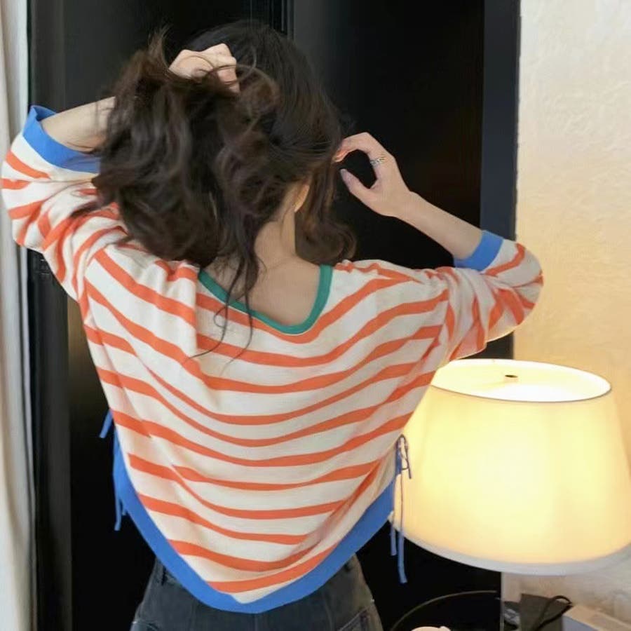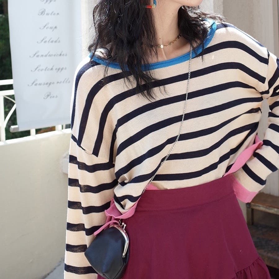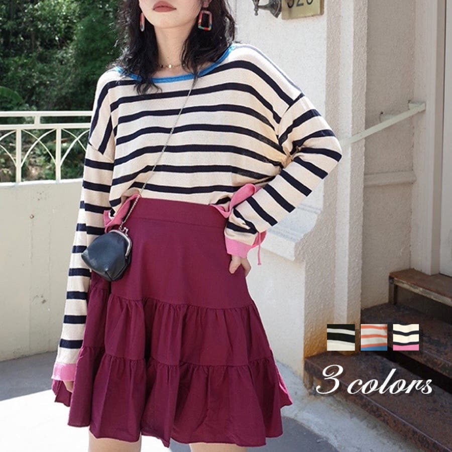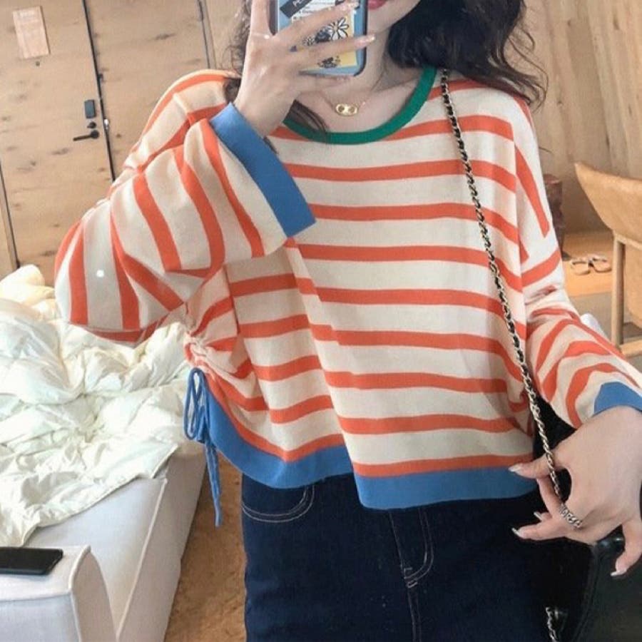 春夏新作。透かしニットトップス 韓国ファッション 夏服 冷房対策 クルーネック 丸首 日焼け止め アウター セクシー 胸元 爽やか 人気 シンプル カットソー 長袖 スウェット 可愛い スポーツ ロンT 体型カバー 無地 透け感 大きいサイズ オーバーサイズ トップス ストリート