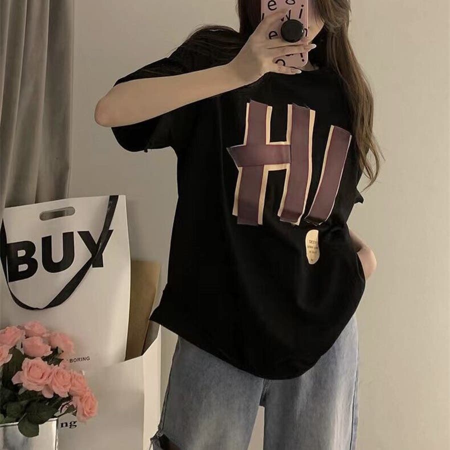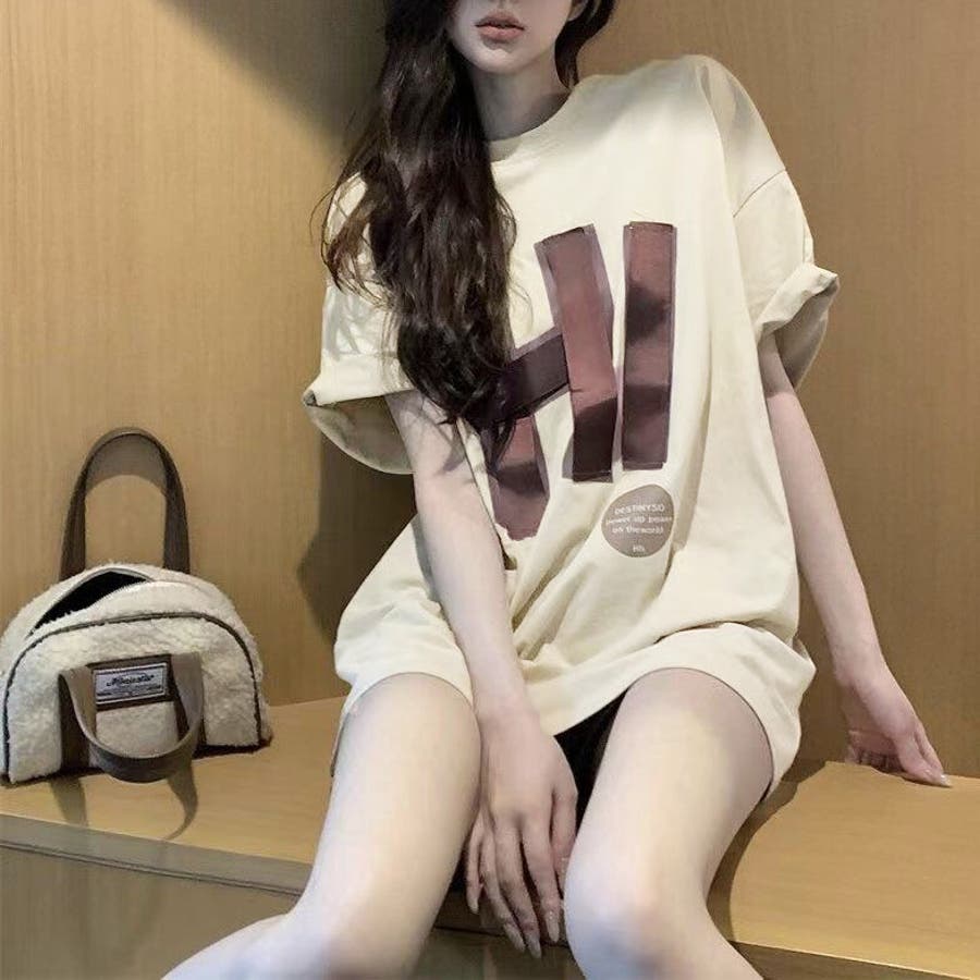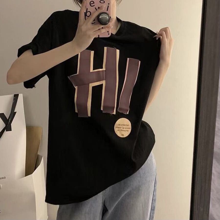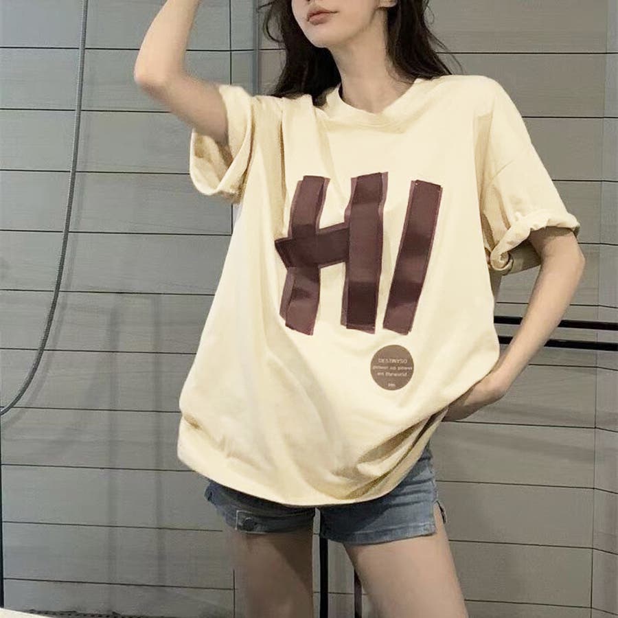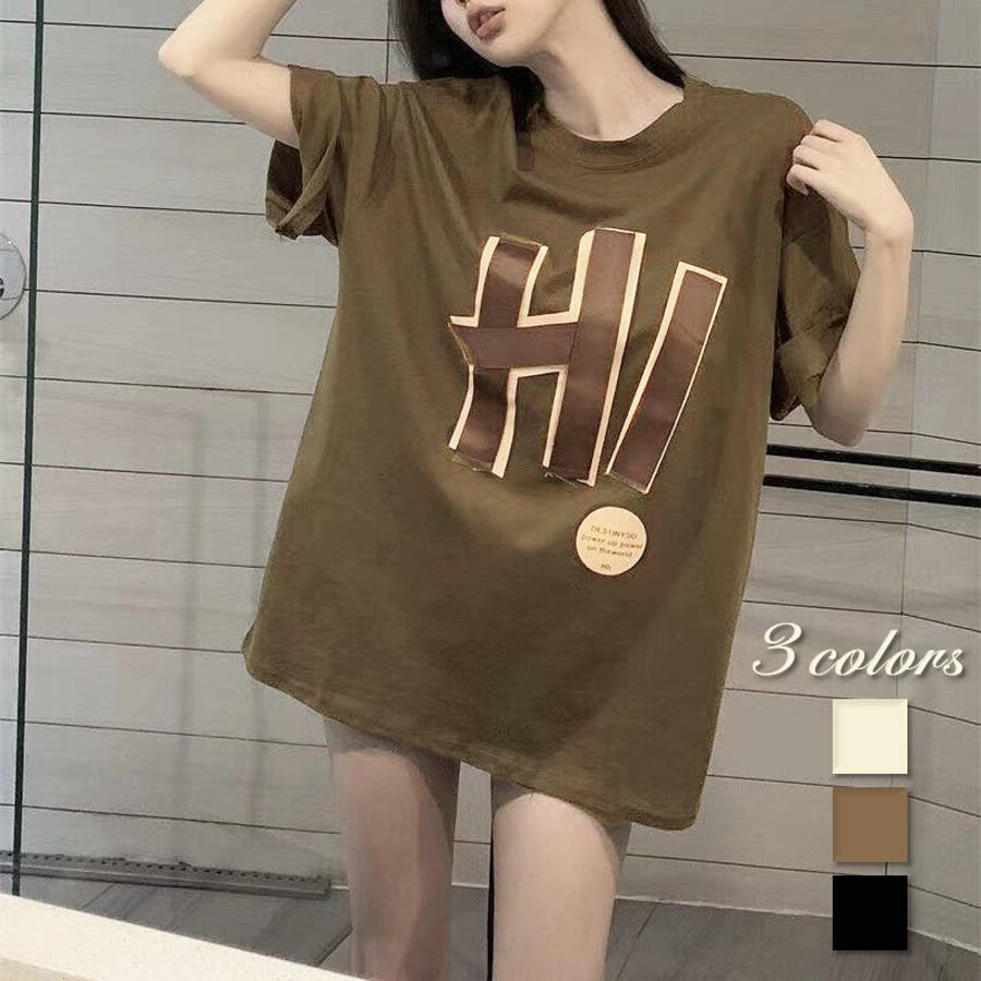 綿100%オーバーサイズロゴプリントT シャツ 韓国ファッション