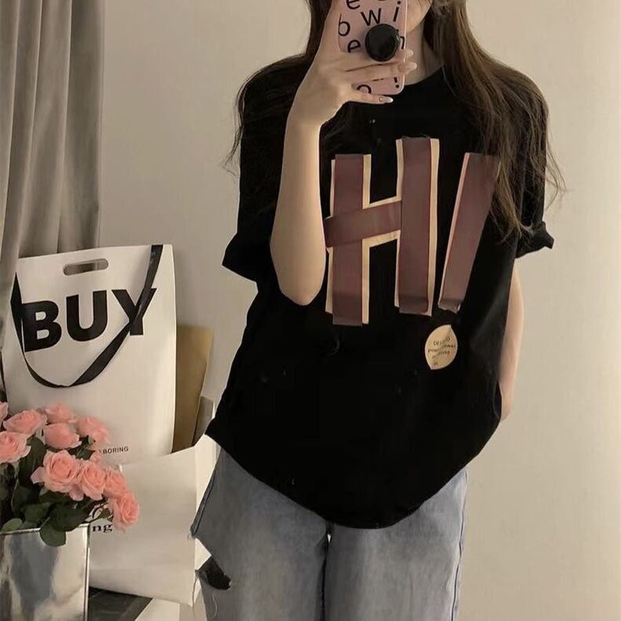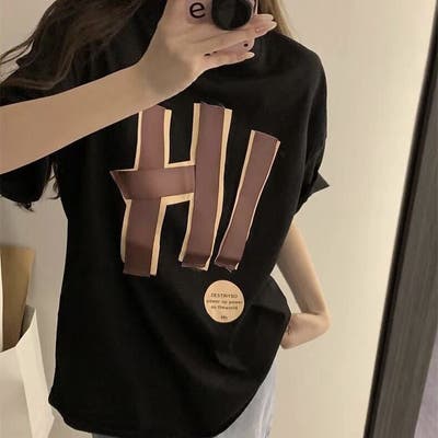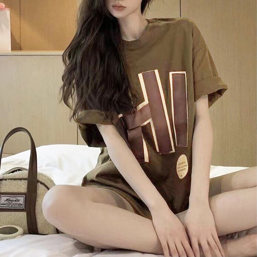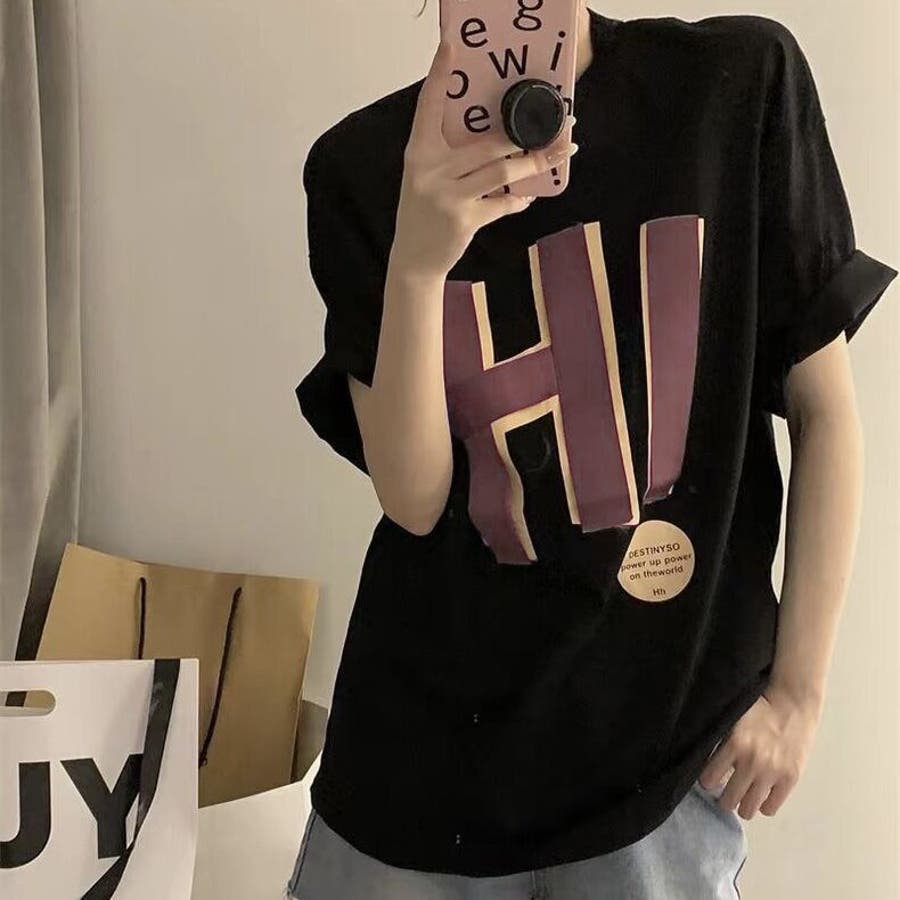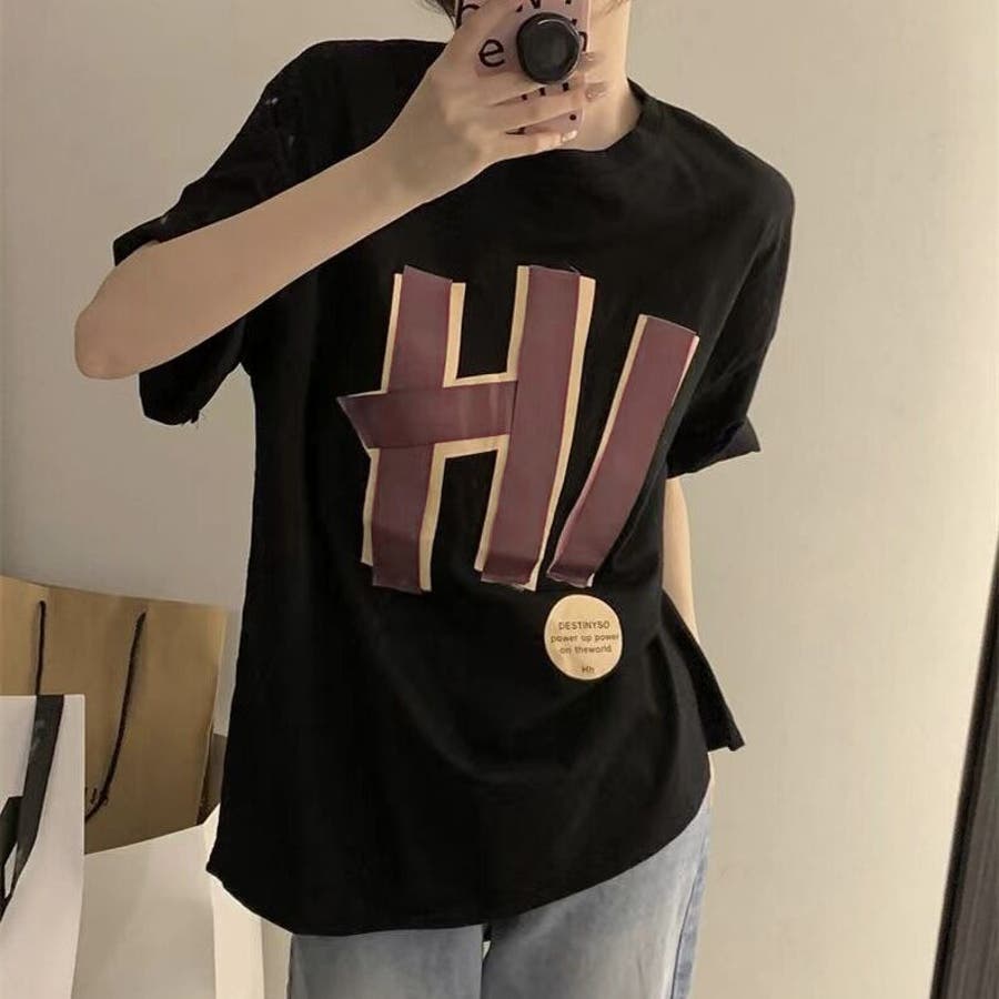 綿100%オーバーサイズロゴプリントT シャツ 韓国ファッション
