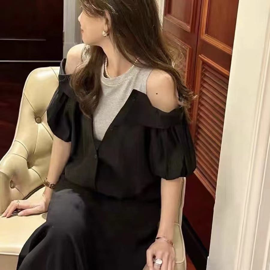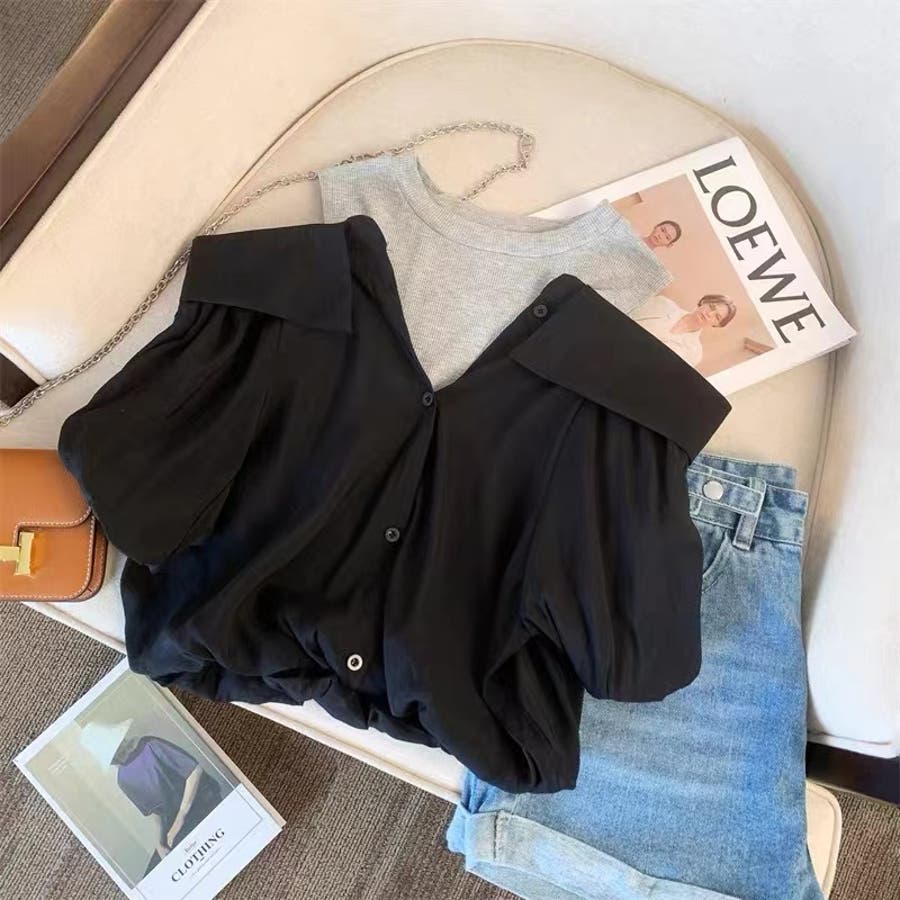 2色ともシャツはベーシックなホワイトなので、抜け感のある印象で夏にも着やすいトップスです♪