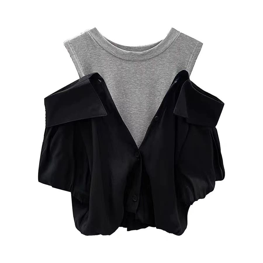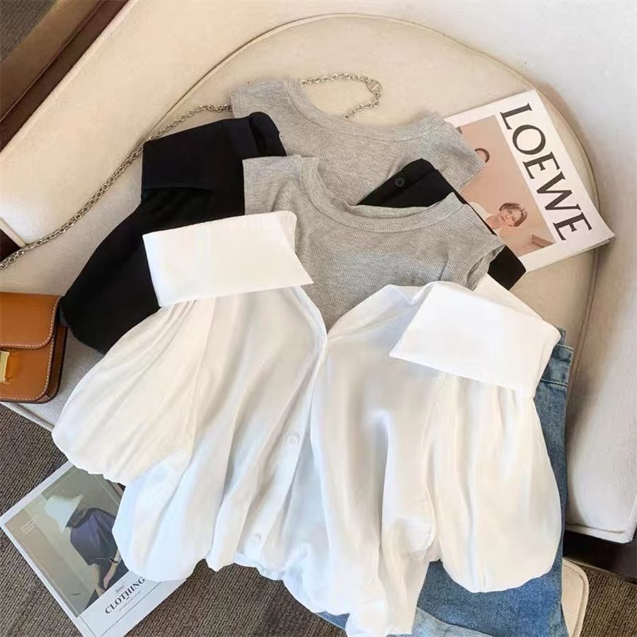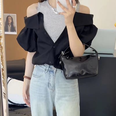 クロップド丈のインナーがセットになった、1枚でカワイイが完成するおすすめのアイテムです!