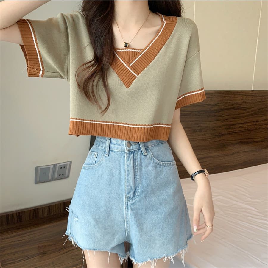 さらっとしたシャリ感のあるアクリル糸を使用した、春、夏、秋、冬、オールシーズン着用いただけるニットトップス◎
