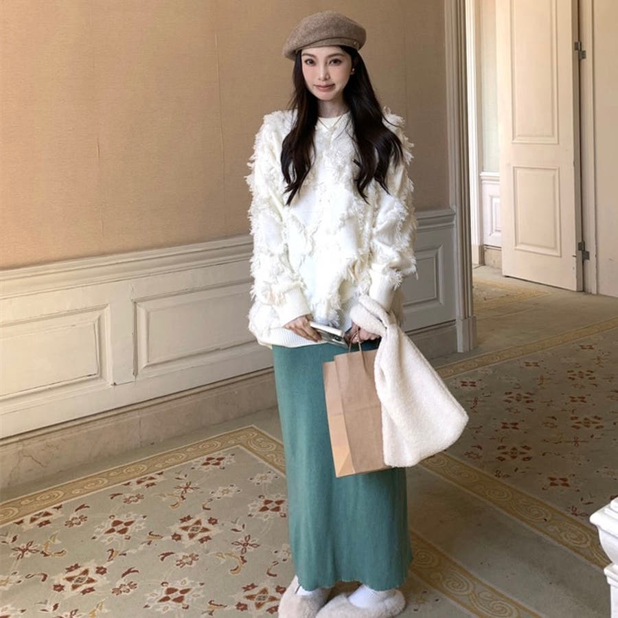 ゆったりシルエットで大人カジュアルな雰囲気をクラスアップするフリンジニットプルオーバーです◎