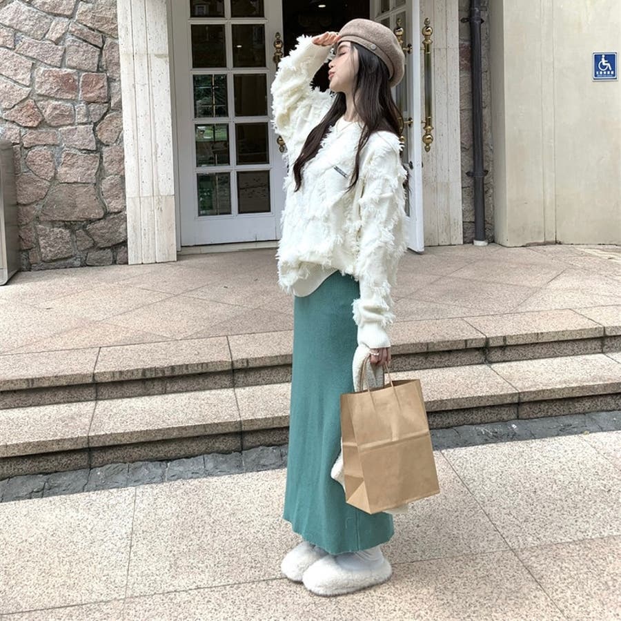 厚みは控えめなので、ボトムにインしたり、コートの中にも着やすいです♡