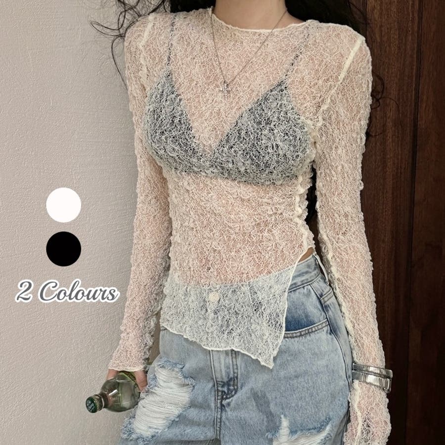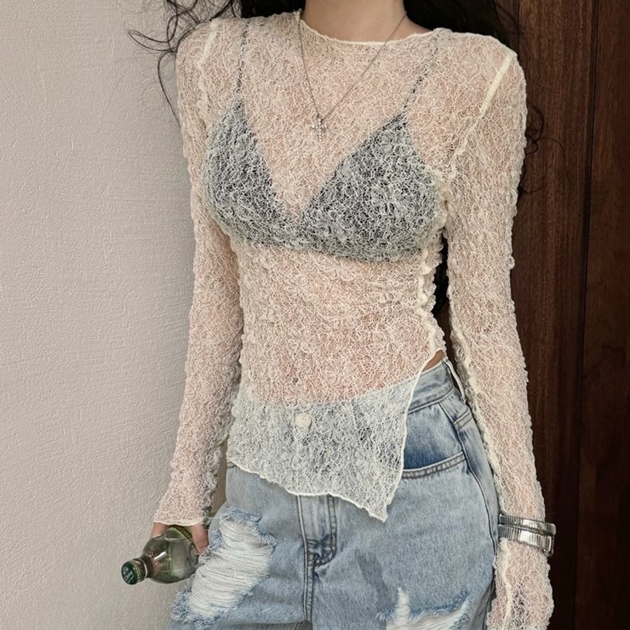 一気にきれいめな雰囲気に。シェアートップス 韓国ファッション 透け
