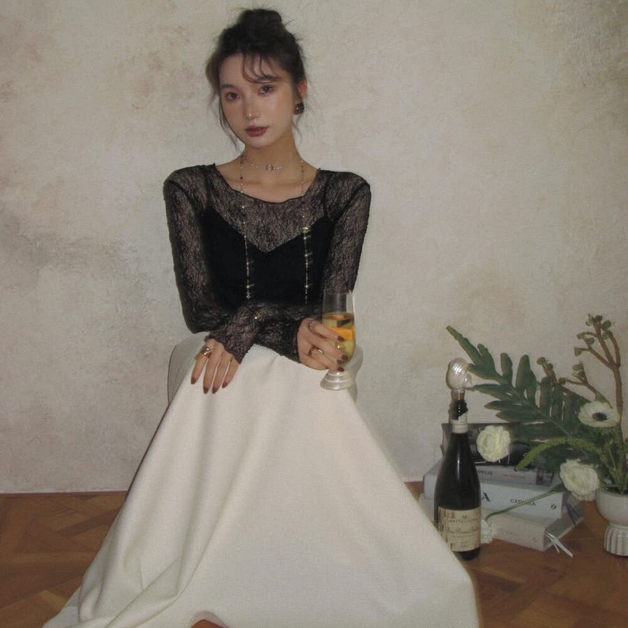 逆にビスチェのようにキャミソールを上に重ねても可愛く、エレガントな雰囲気に。インナーにもアウターにもなっちゃう優れものです。