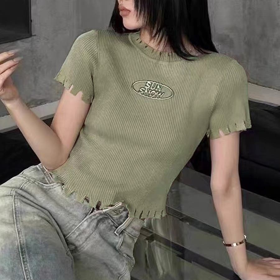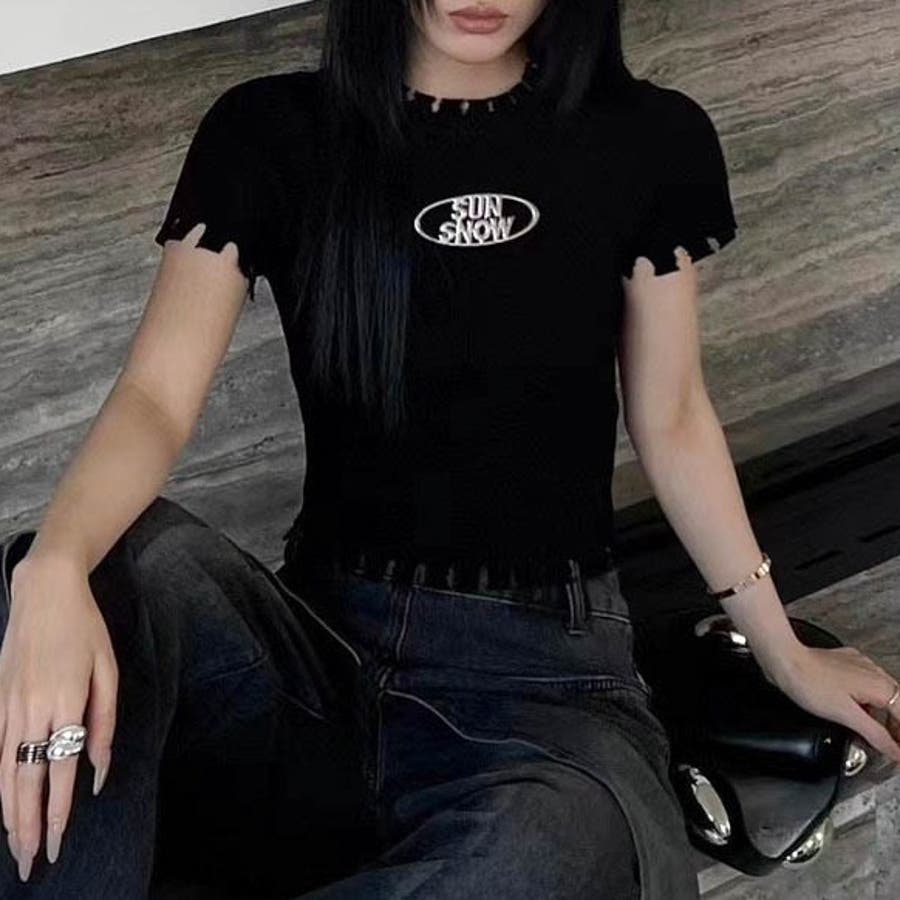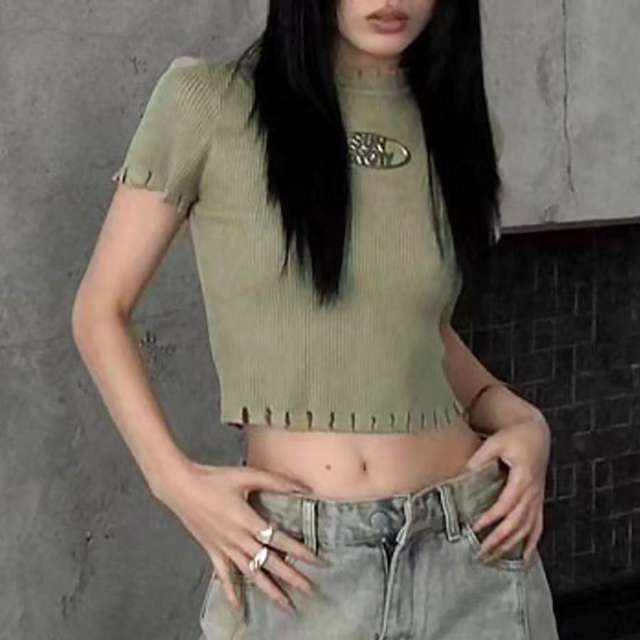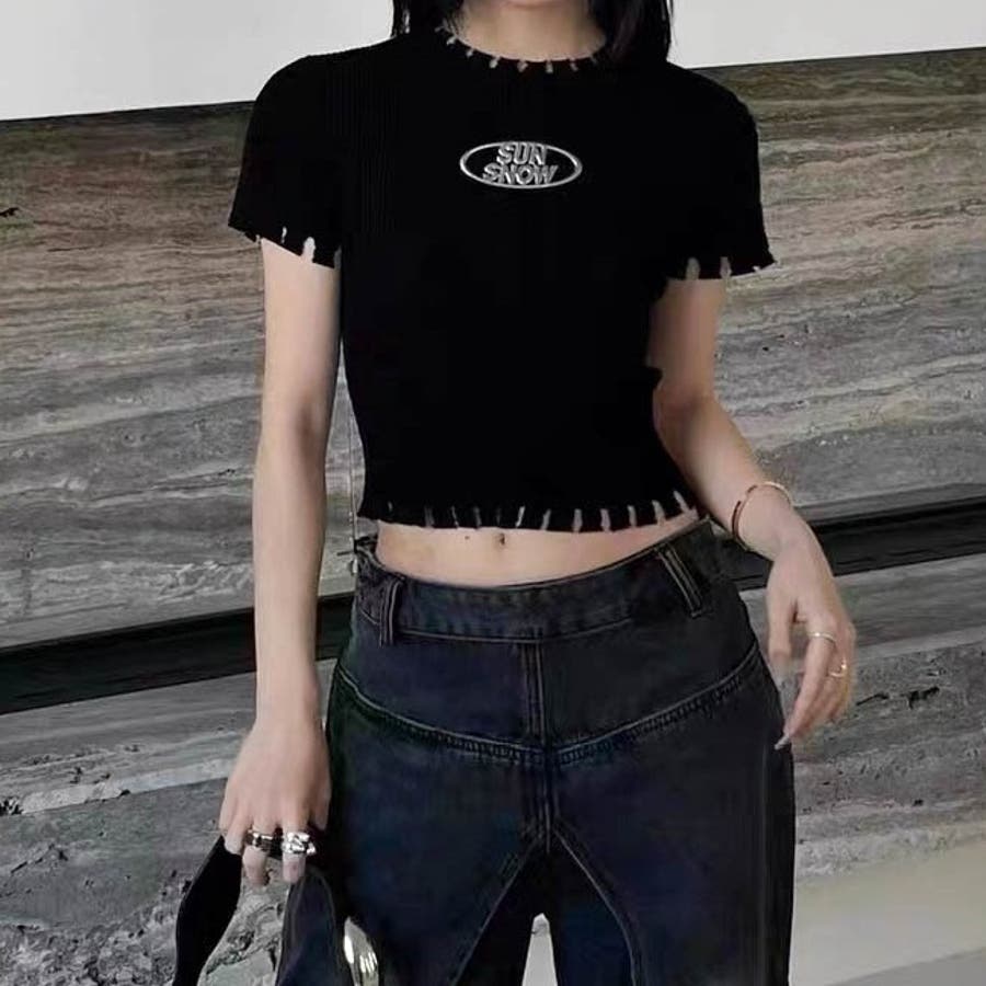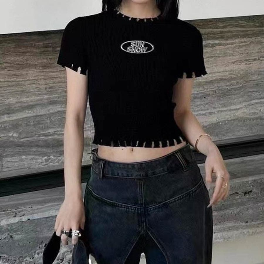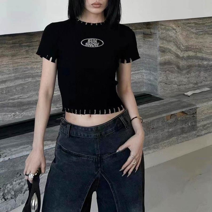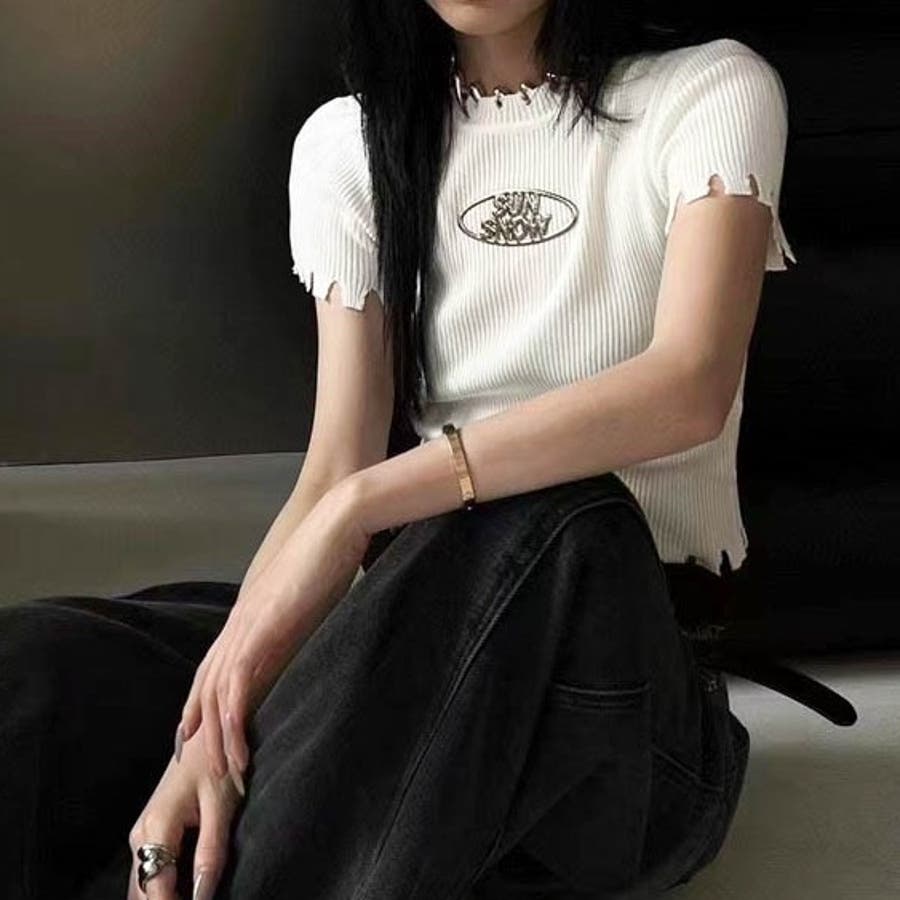 配色がこなれ感をプラスまたダメージ加工が裾、袖、ネック部分に施されており、今っぽいアイテムに仕上げました♪