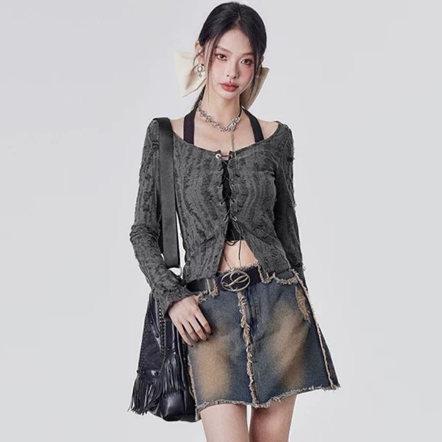 ミニスカートやタイトスカートと合わせると、大人っぽく着ることができます◎