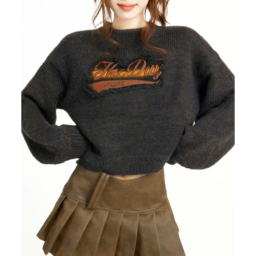 トレンディなロゴ刺繍入りニットセーター:洗練された秋冬スタイルにぴったりのアイテ…