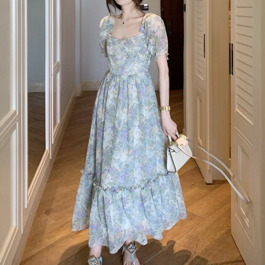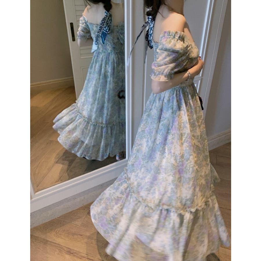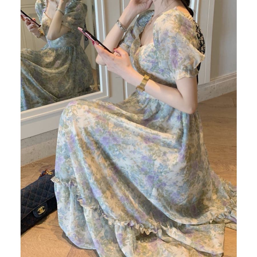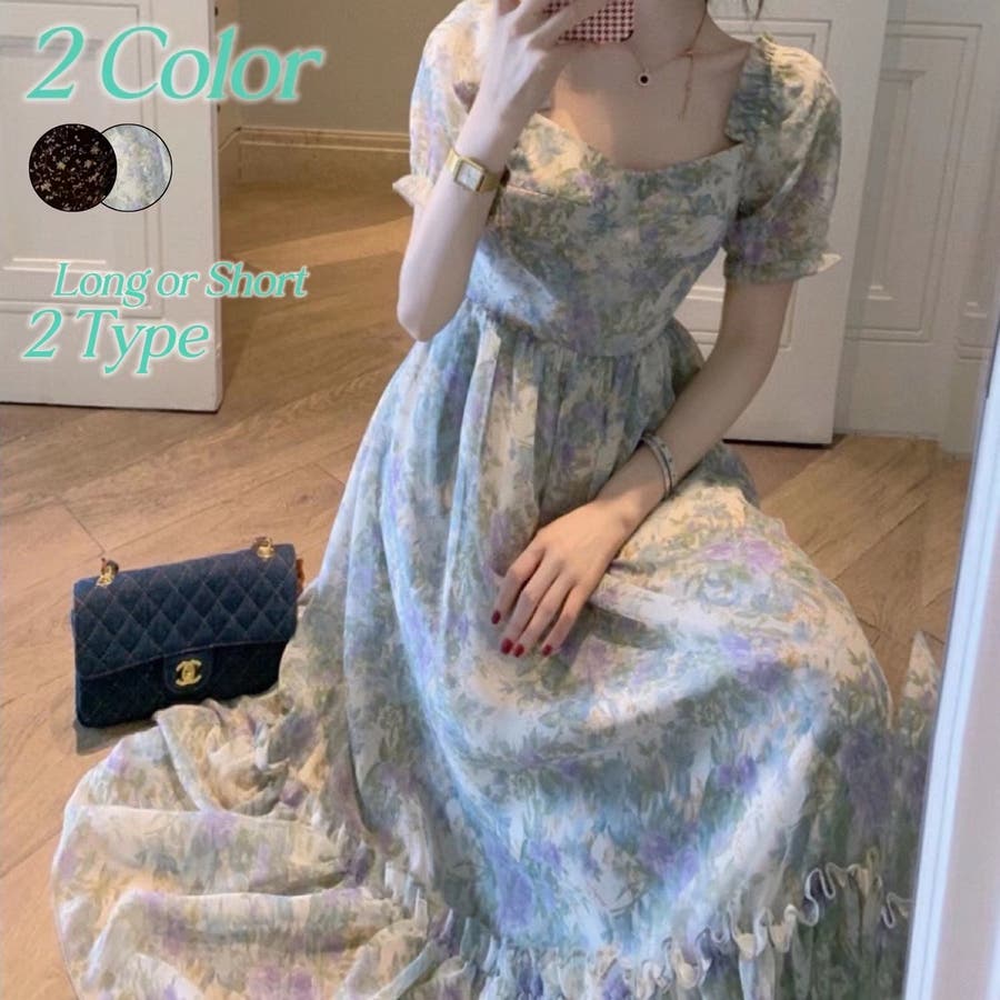 小花柄シフォンワンピース 韓国ファッション パーティードレス