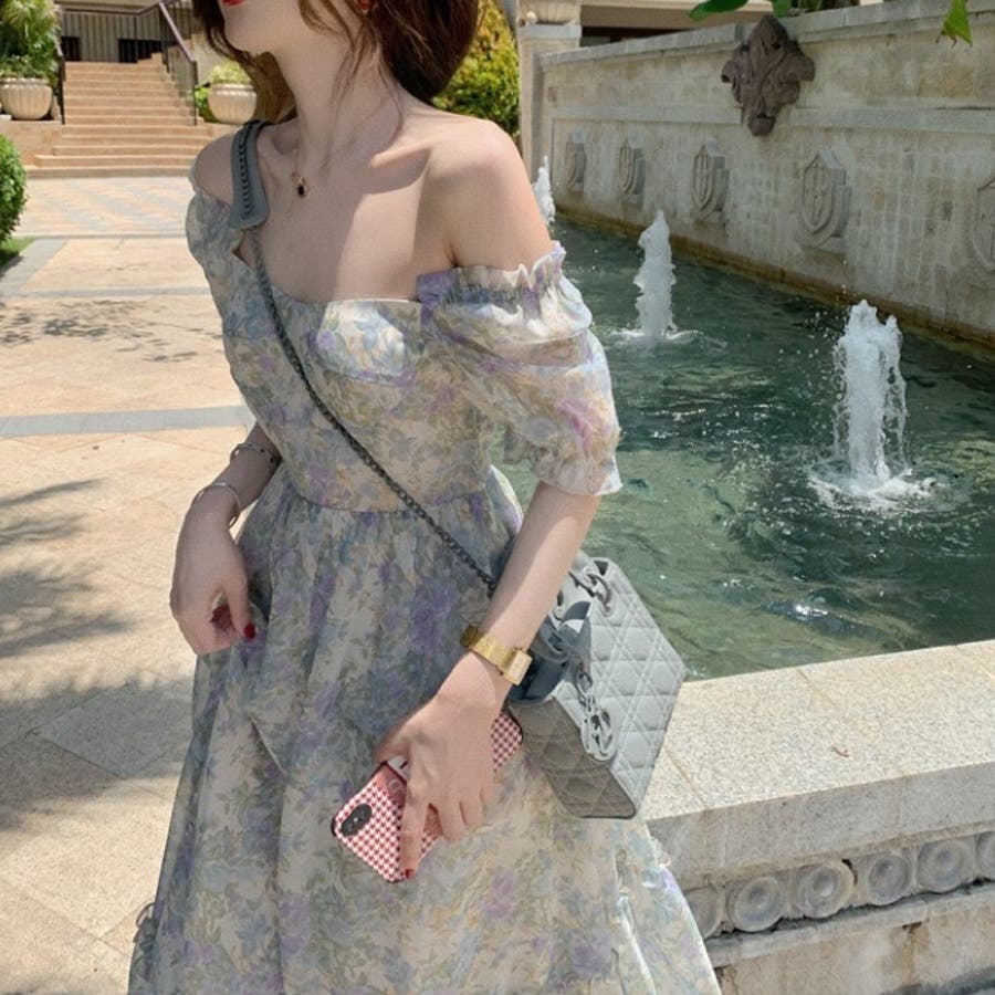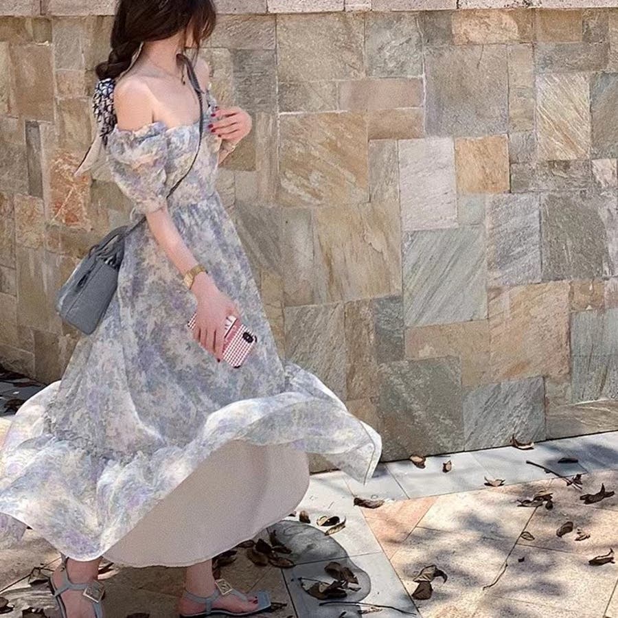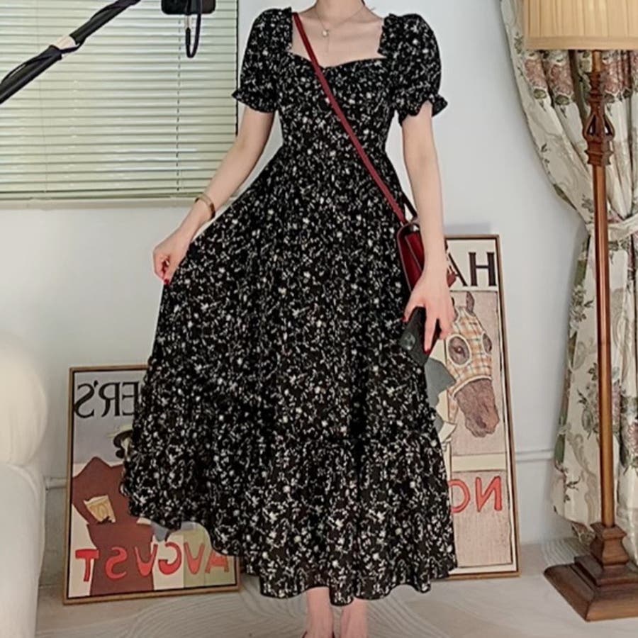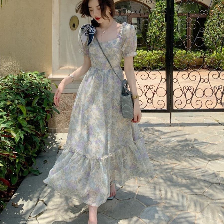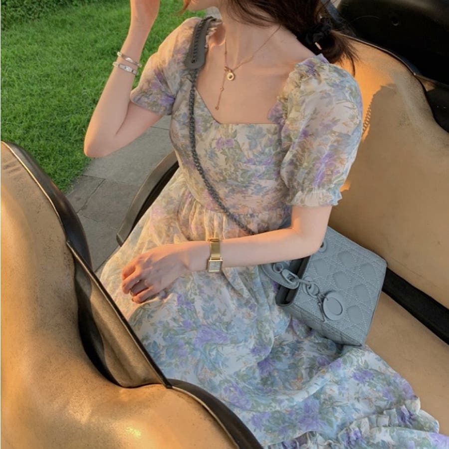 小花柄シフォンワンピース 韓国ファッション パーティードレス