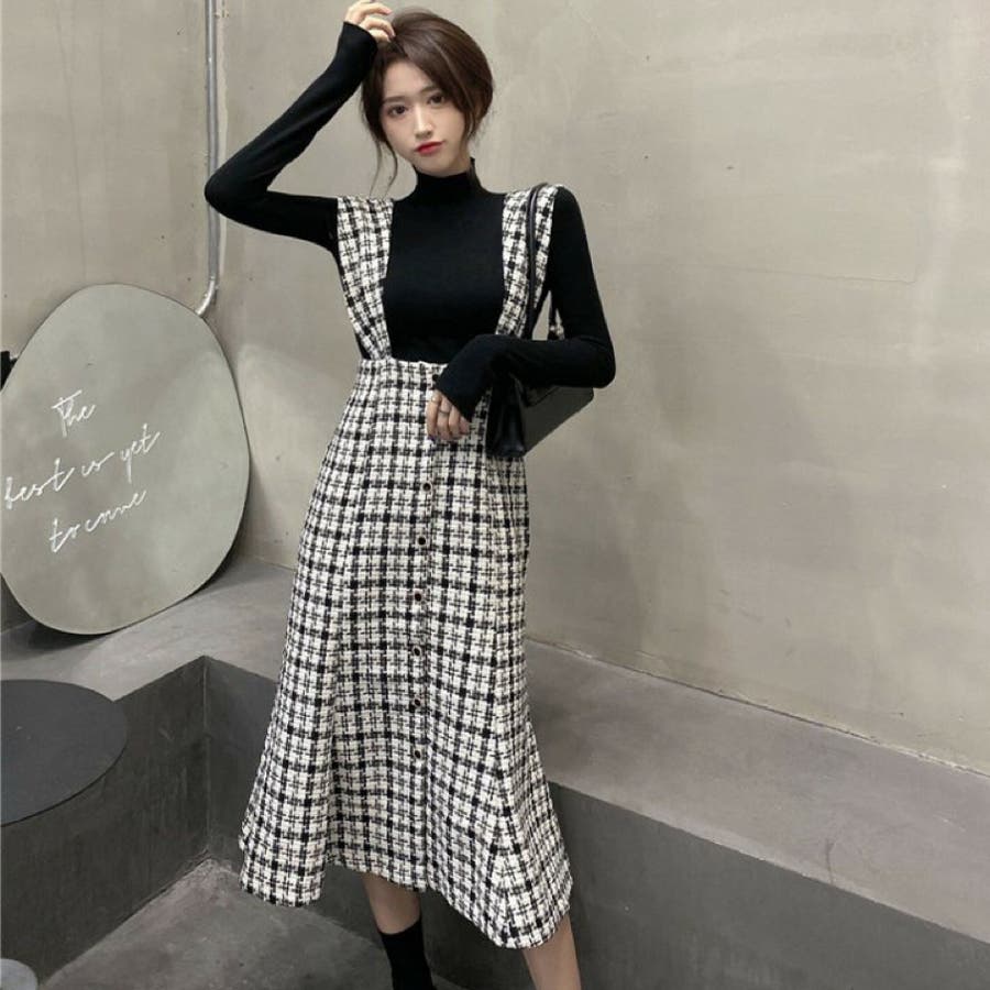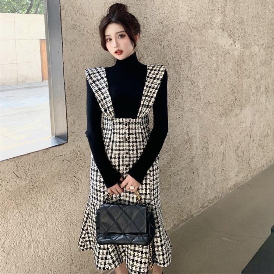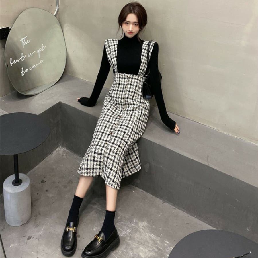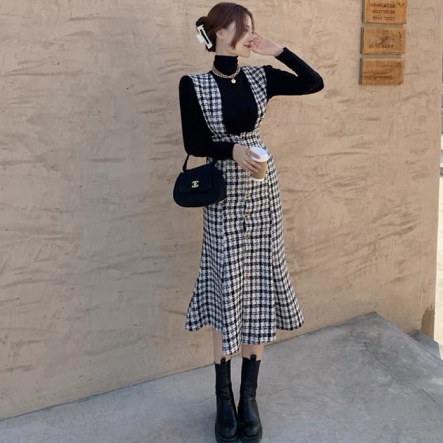 シックに仕上げたマーメイドラインのジャンパースカート。