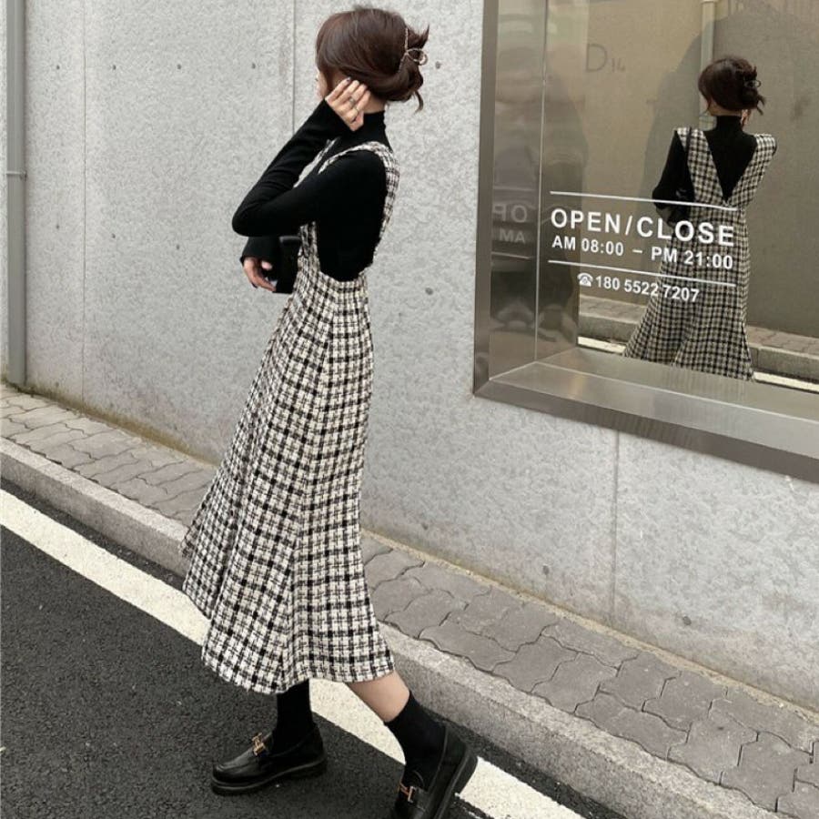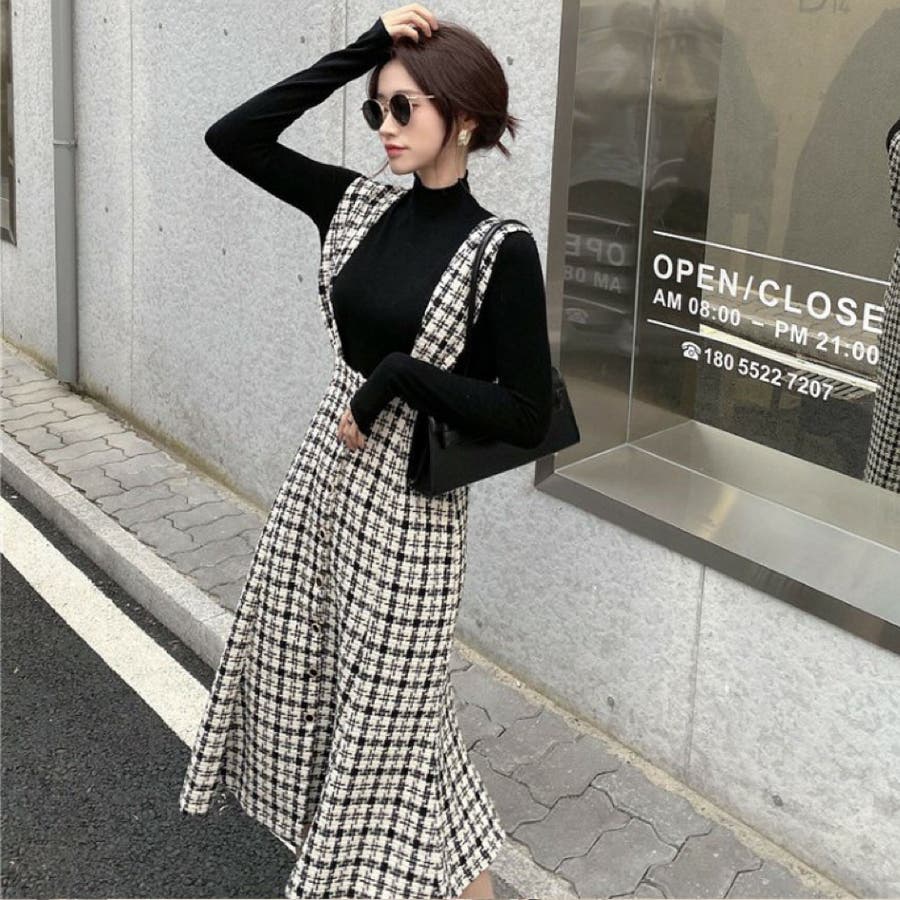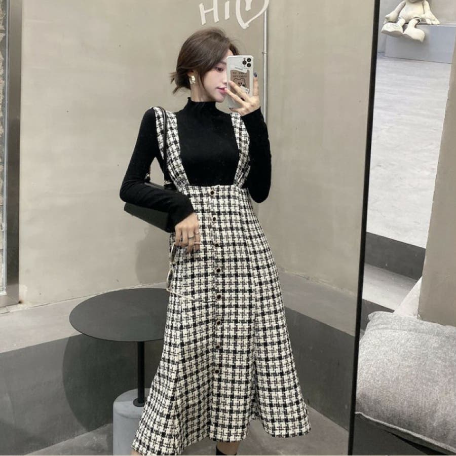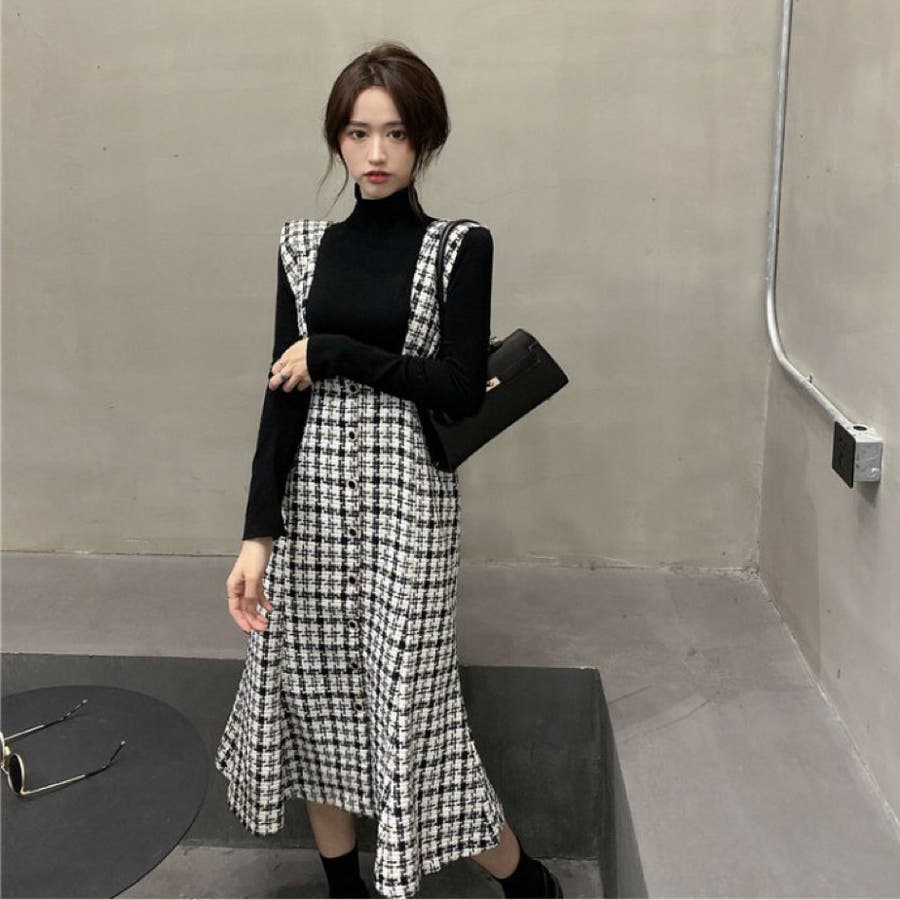 シックに仕上げたマーメイドラインのジャンパースカート。