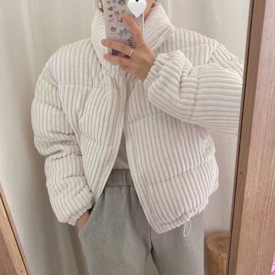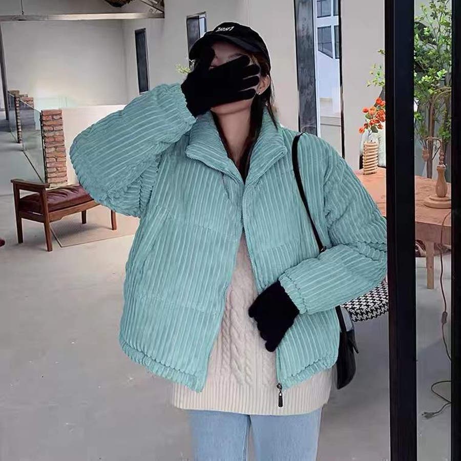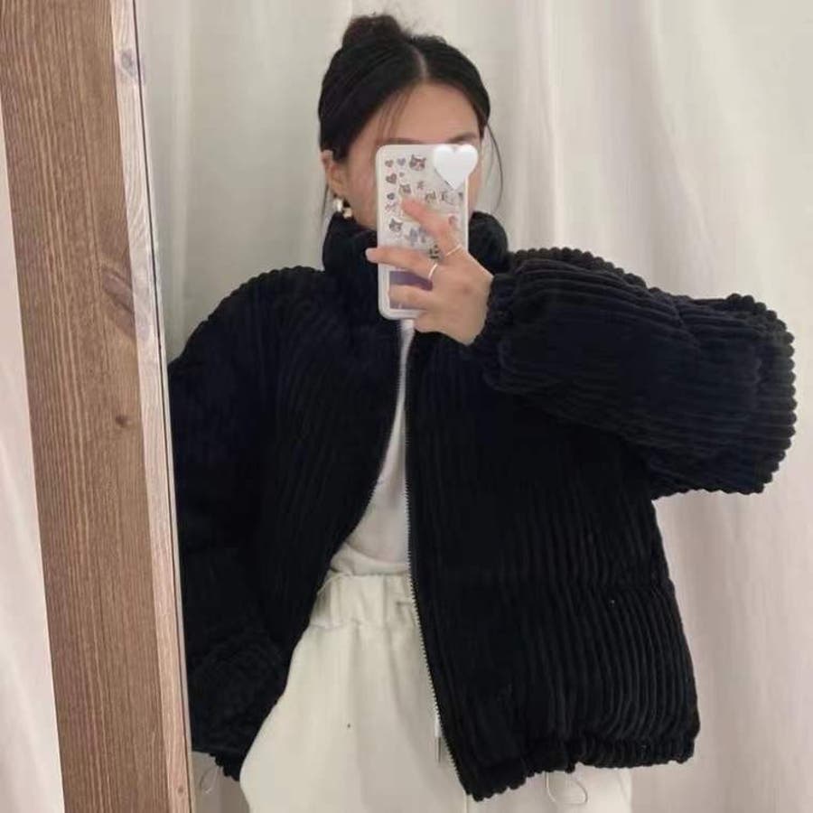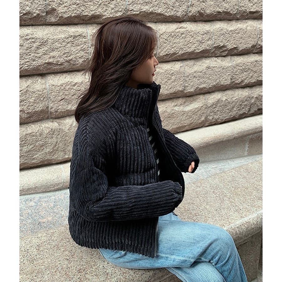 コーデュロイ中綿ブルゾン 韓国ファッション ワンカラー