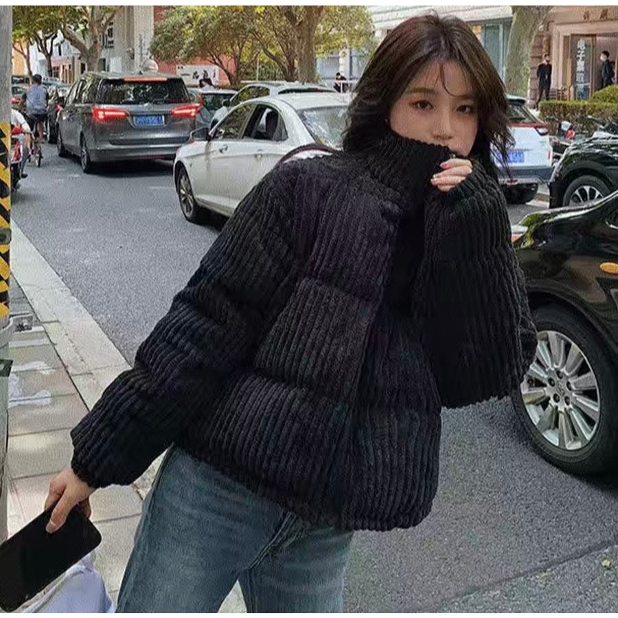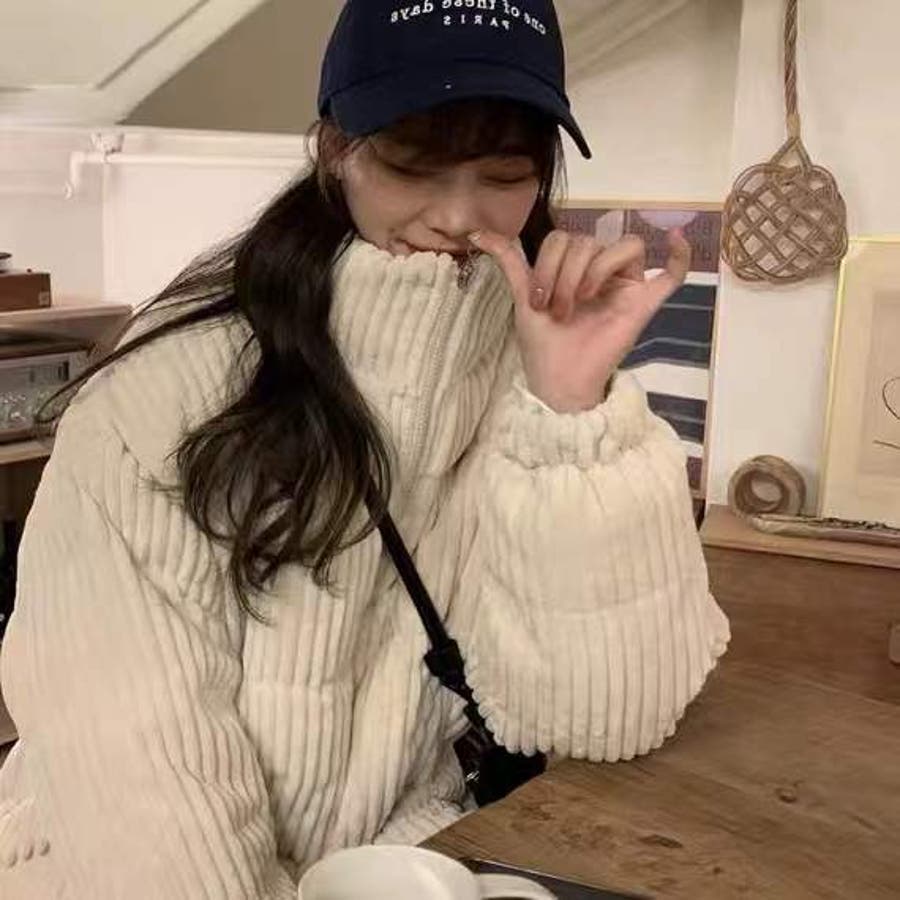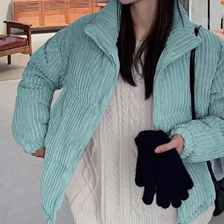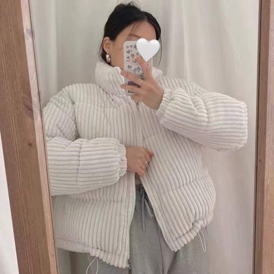 コーデュロイ中綿ブルゾン 韓国ファッション ワンカラー