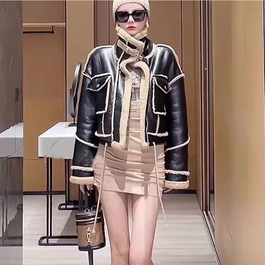ショート丈裏ボアフェイクムートンジャケット コート 韓国ファッション