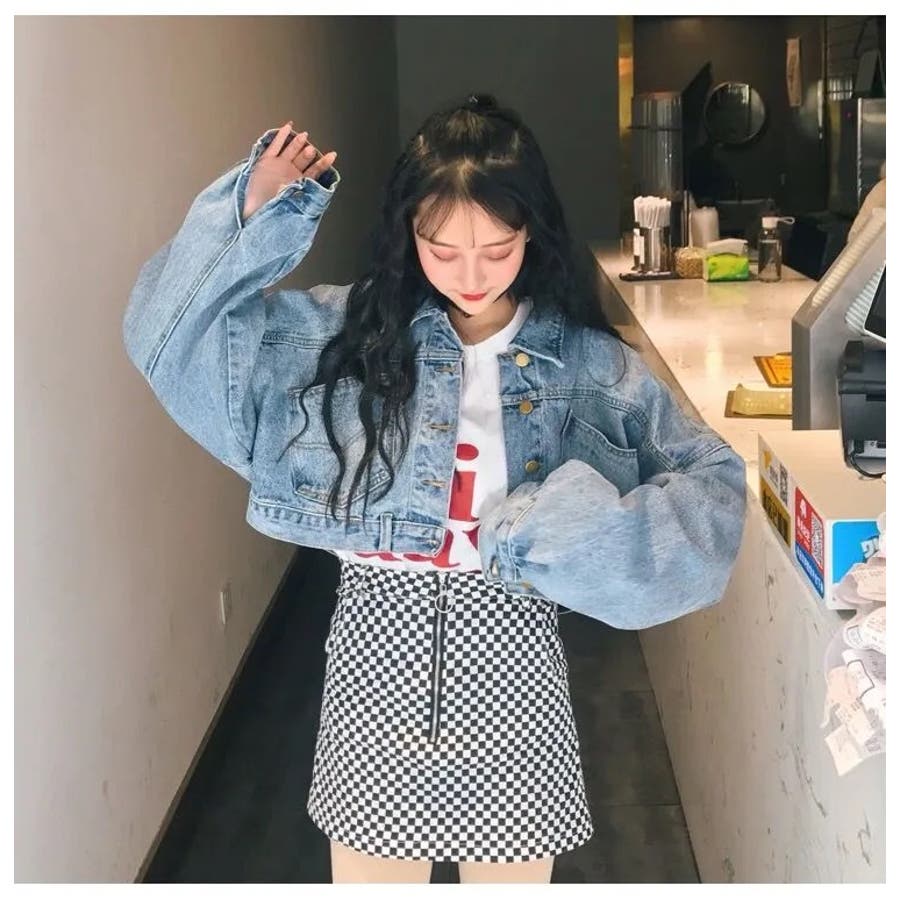 こなれ度抜群!ボリューム袖Gジャン 韓国ファッション ショット丈