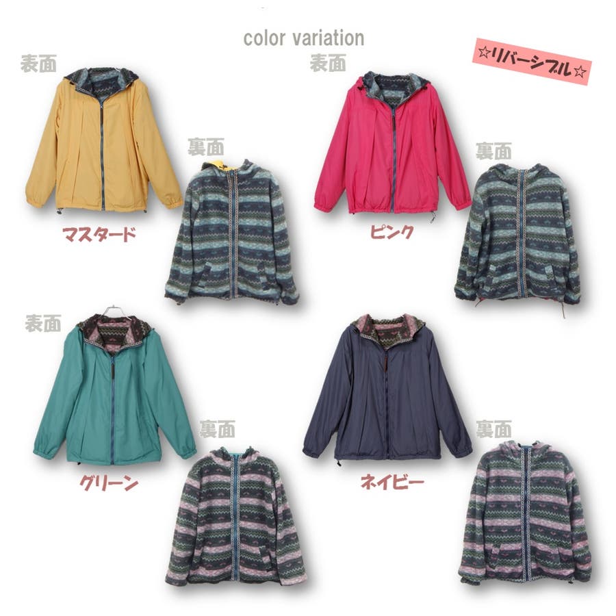 フリース素材にネイティブ柄をプリントした生地と柔らかいタフタ生地を合わせてできたリバーシブルマウンテンパーカー。無地と柄で2通り楽しめてお買い得な1枚です。気分に合わせてコーディネイトしてみてください♪