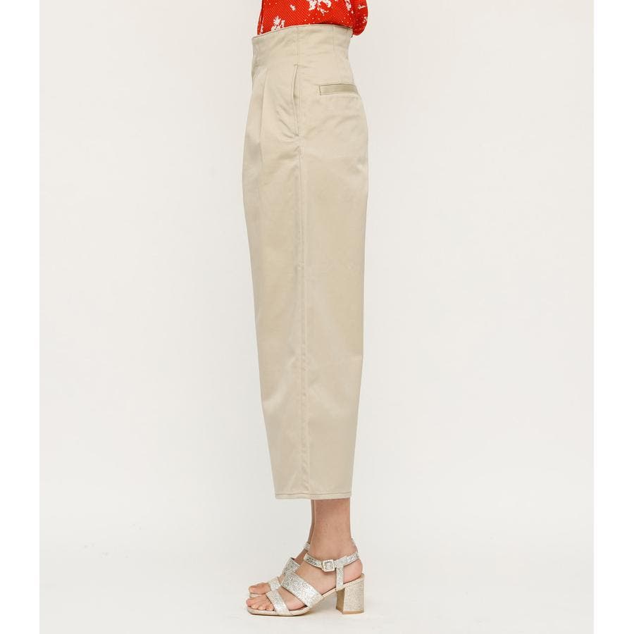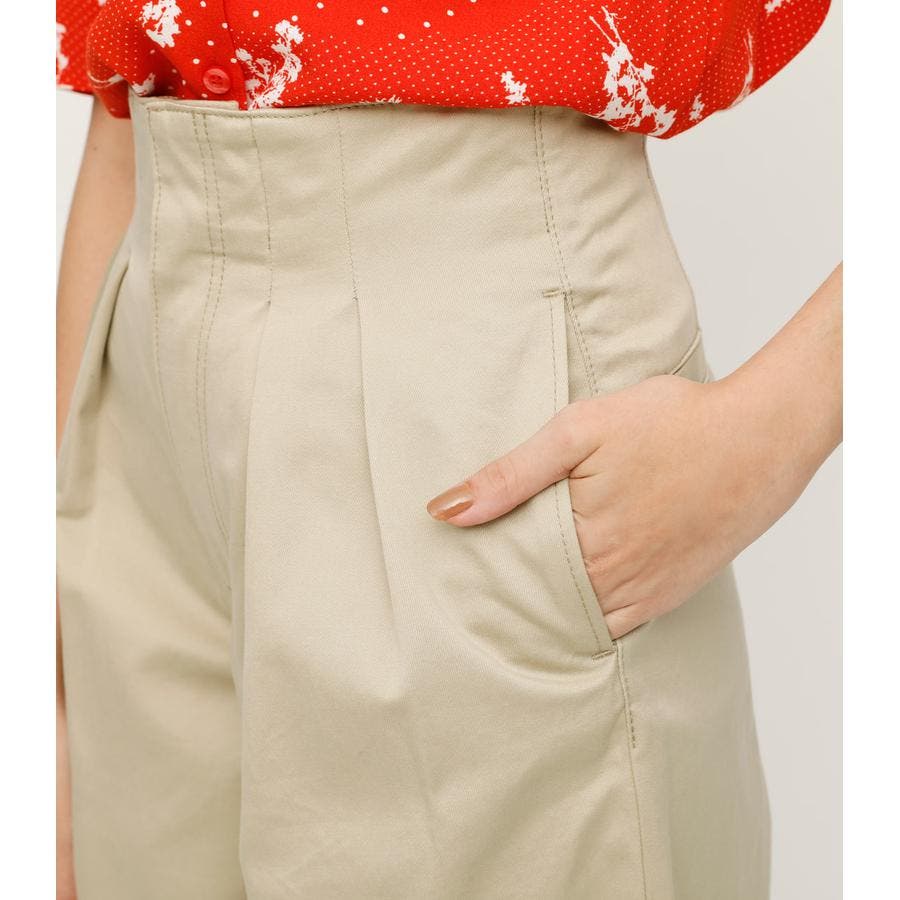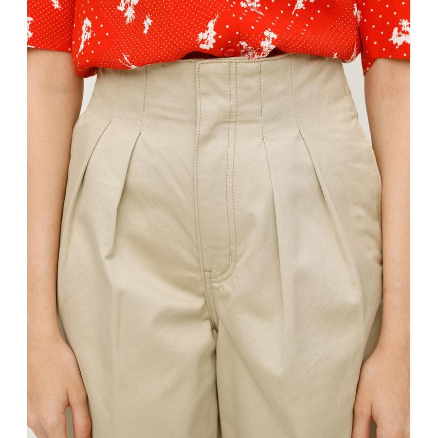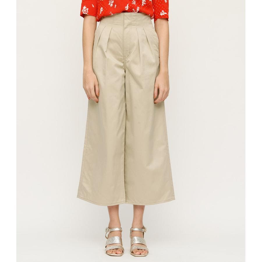 ハイウエスト&タックデザインがポイントのデニムパンツ。ワイドシルエットは脚長効果もあり、コンパクトなトップスと合わせてAラインシルエットのスタイリングがオススメ。ベージュカラーはデイリーに使いやすい万能カラー。