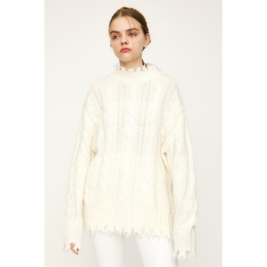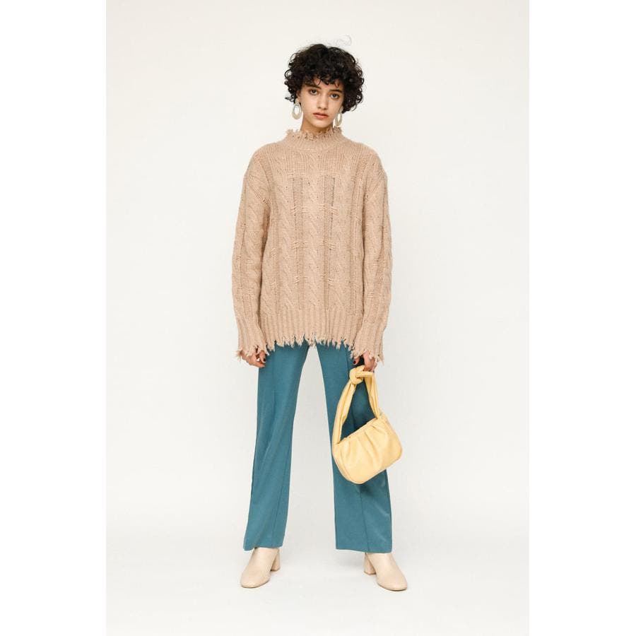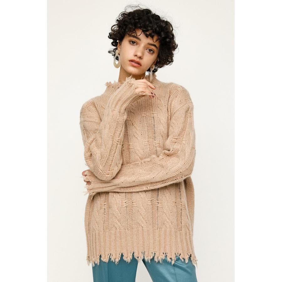 トレンド感のあるダメージ加工を施し一枚で印象的なデザインに。ゆったりとしたシルエットなので、体型を気にせず着用できるのも嬉しいポイント。