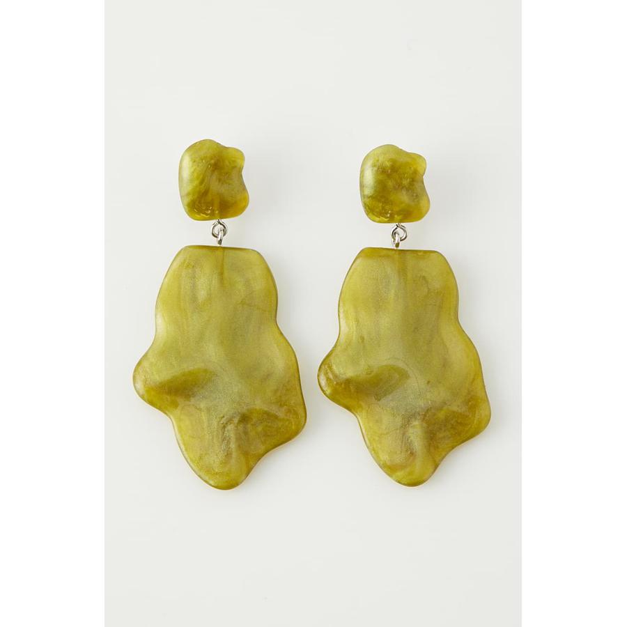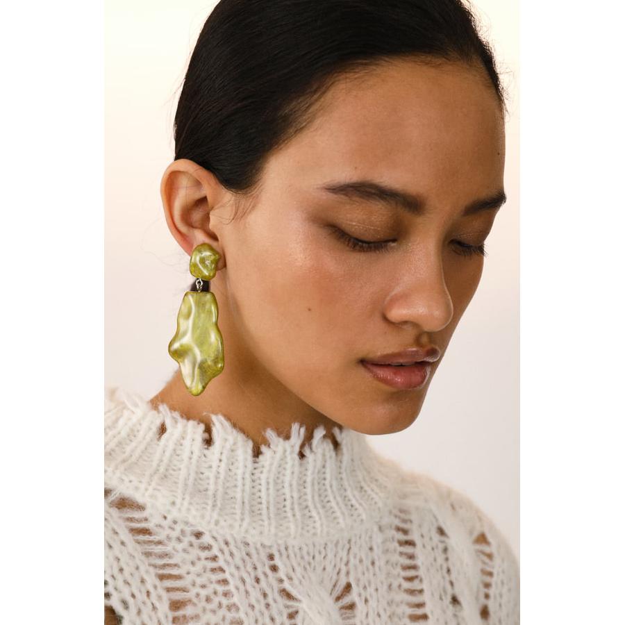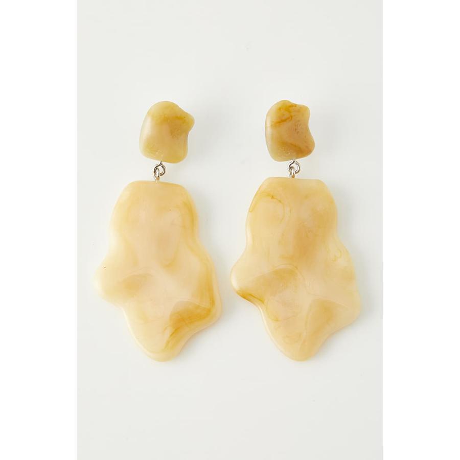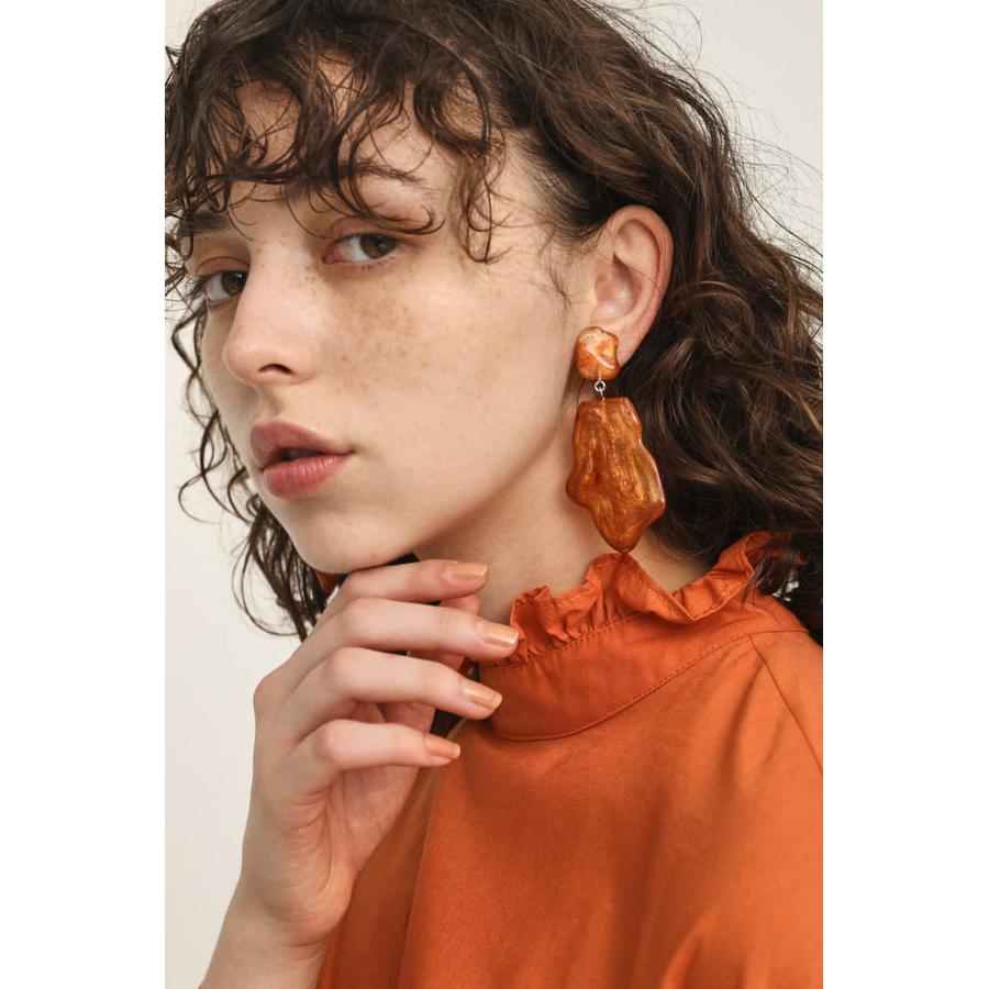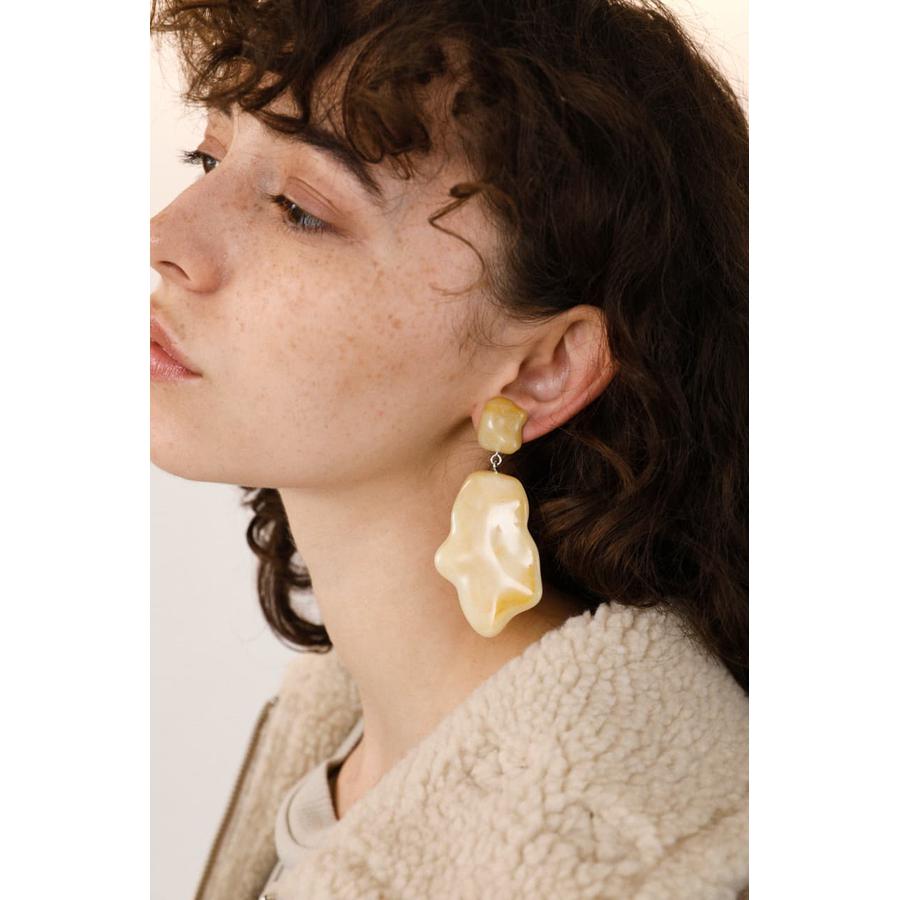 いびつなモチーフが特徴的なデザインイヤリング。ムラのあるツヤアクリルが可愛く、スタイリングのポイントになるようなアクセサリー。