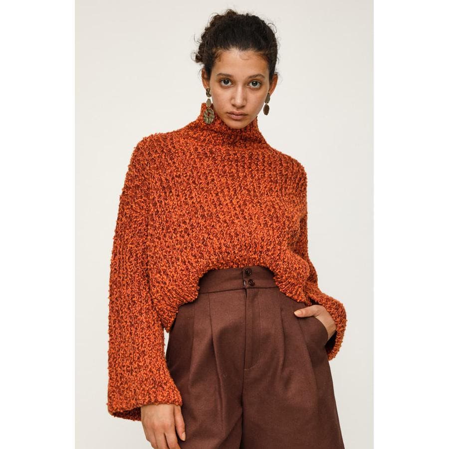 目を引くPON PON糸との掛け合わせで、他にはないオリジナルのカラー感と表面感にこだわった特別なニット。LAMBS WOOLの特徴は柔らかく、伸縮性があり、滑りやすく、高級繊維に使用されています。カジュアルにパンツスタイルで合わせるのがおすすめ。