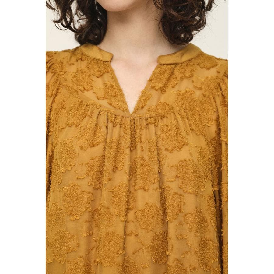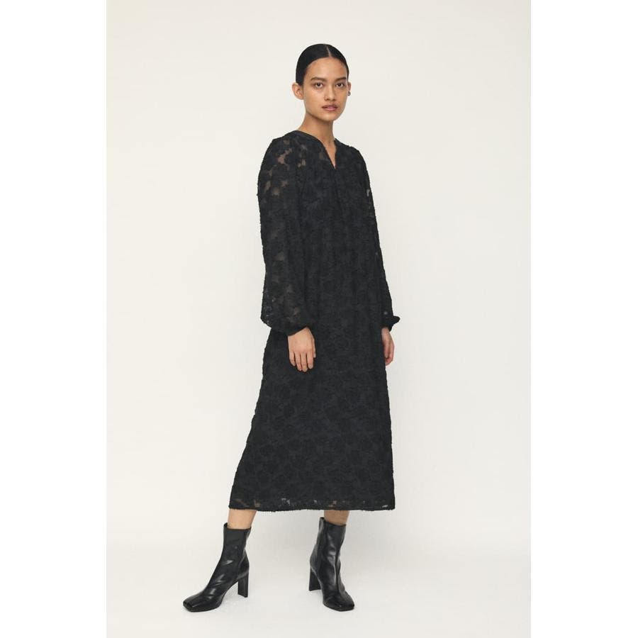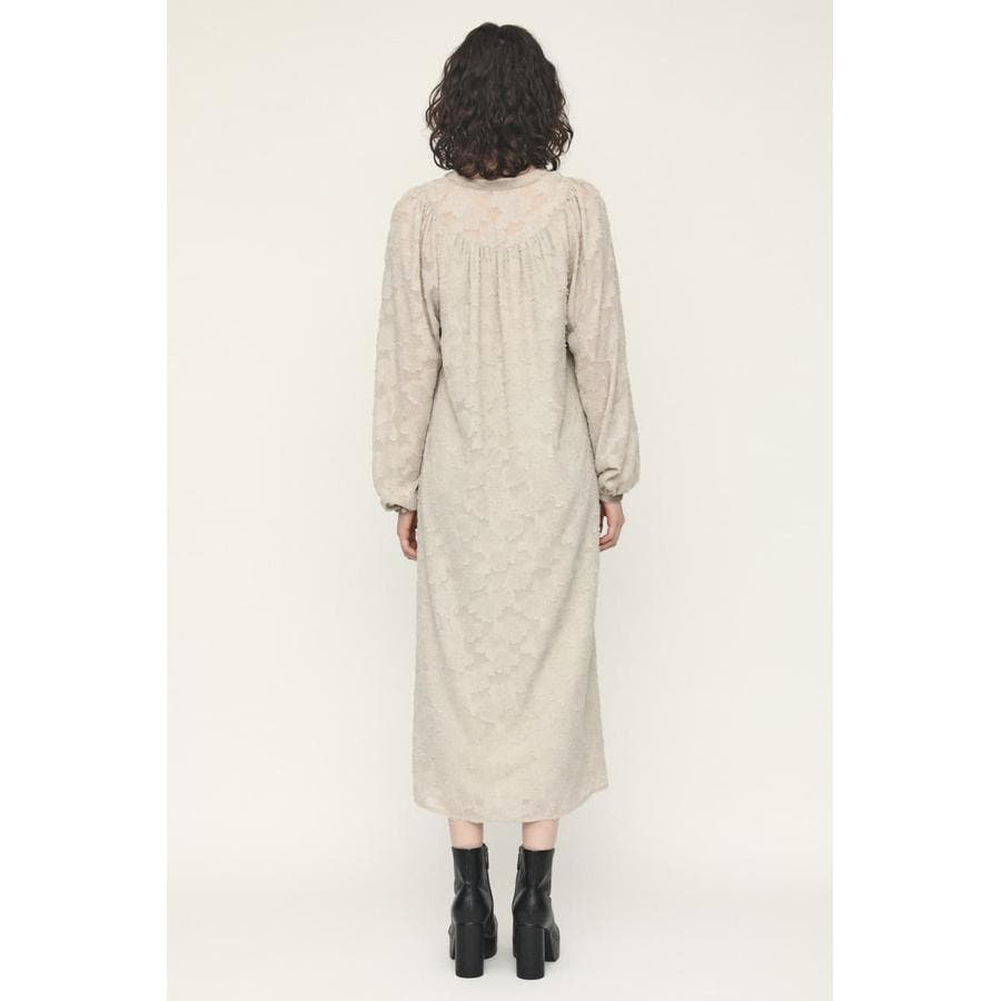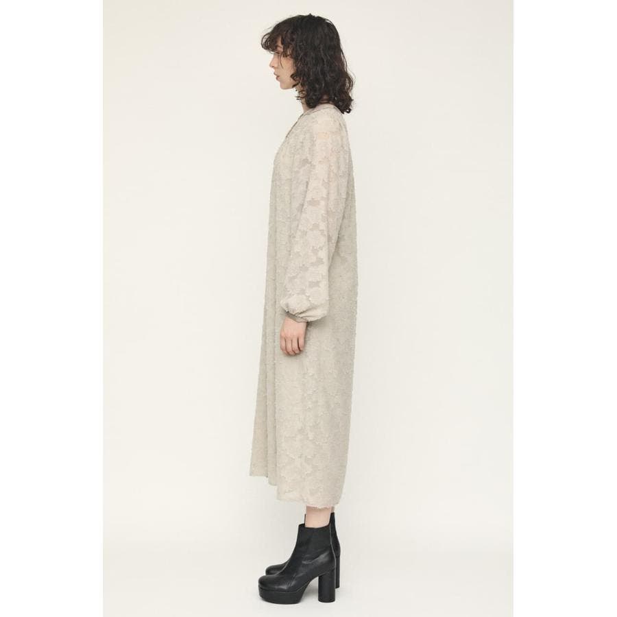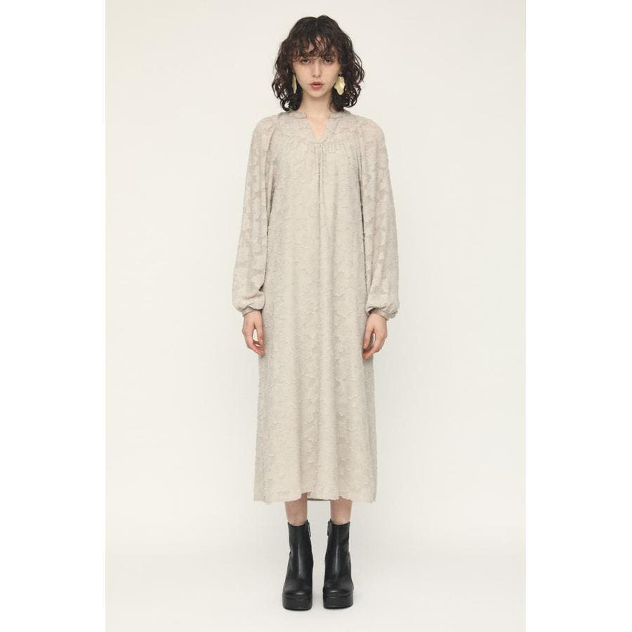 オリジナルのMOTTED柄で仕上げたギャザーワンピース。透け感のあるカットジャガード素材を使用。着るだけで秋感の出せるアイテム。