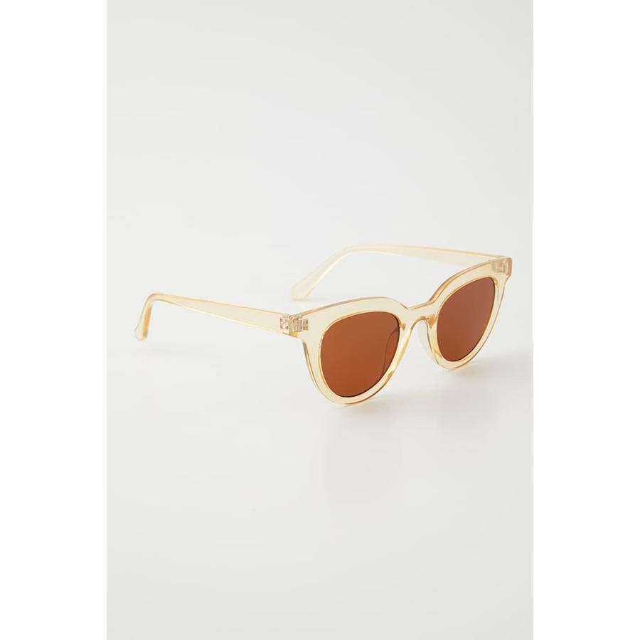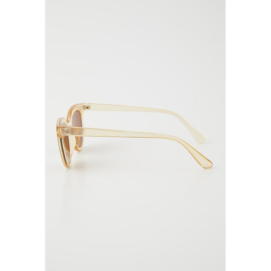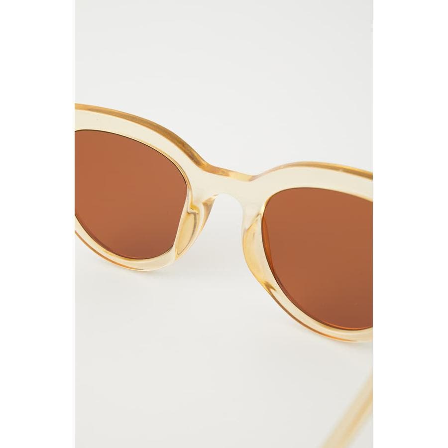 コーディネートのポイントになる絶妙なカラーが可愛いサングラス。クリアベースのベージュとレトロな印象のブラウンベースの2色展開。普段使いしやすい形のフレームにもご注目。