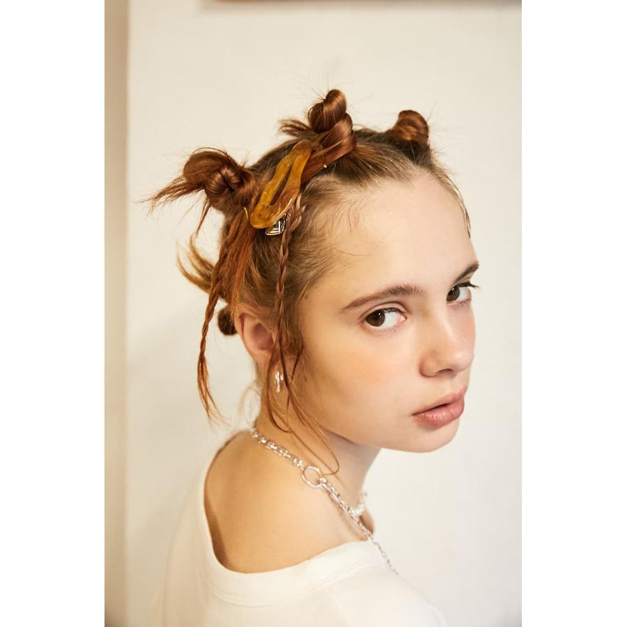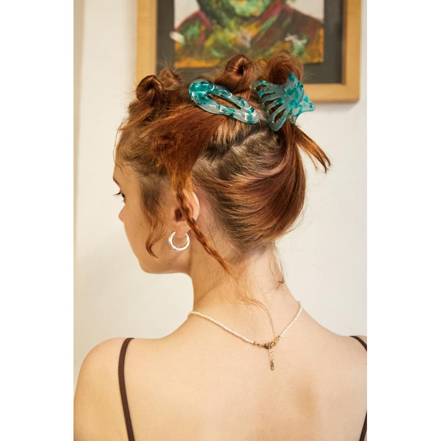 オリジナルの型をおこして作ったヘアークリップ。程よいサイズ感と他にはない歪なデザインなので、様々なヘアアレンジのポイントに。