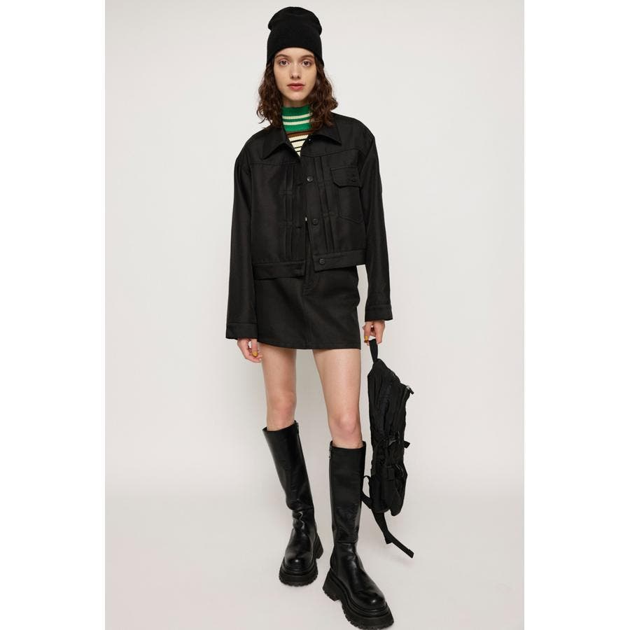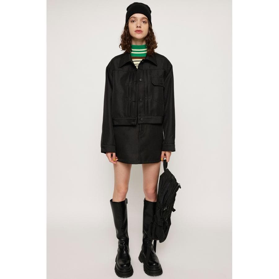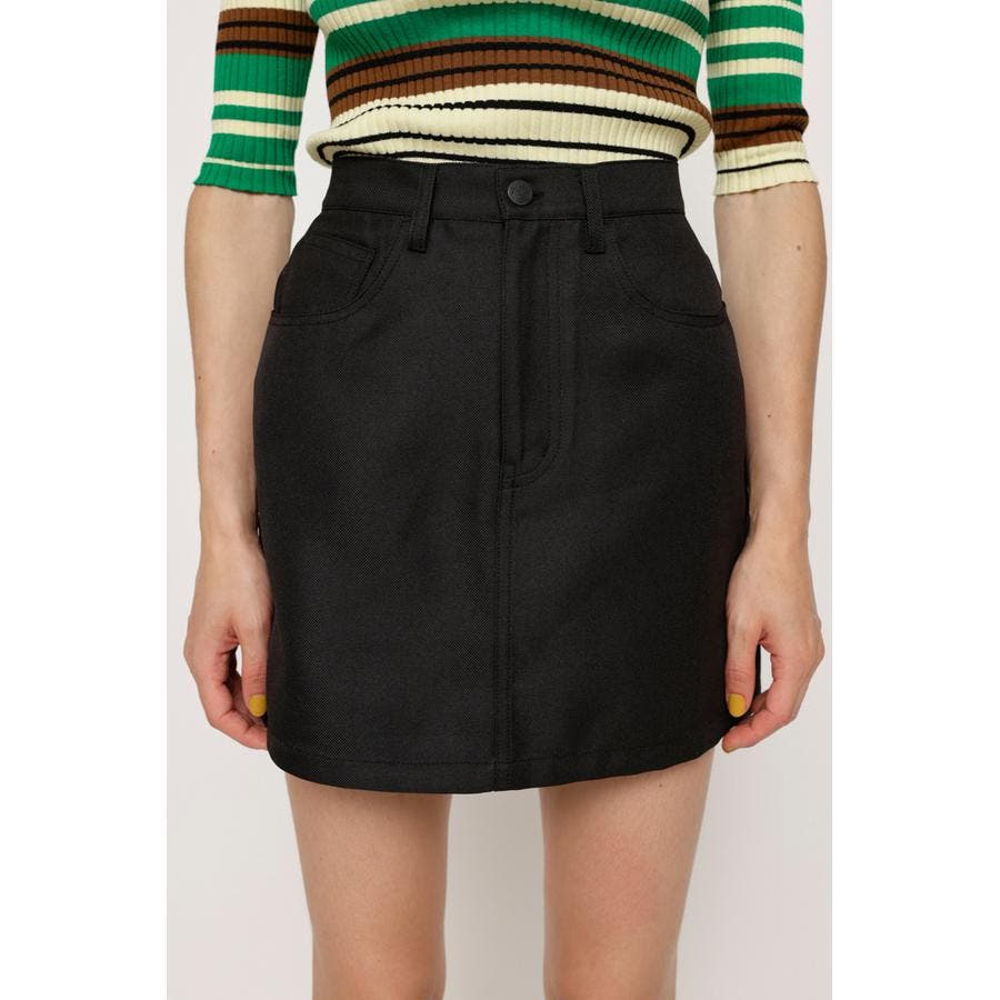 縮みにくく、シワになりにくい、何度履いても使用感が変わらない特徴を持つポリエステル混の綾織りミニスカート。デニム感覚で履けるのにデニムよりも上品に見えてかつ、ノーアイロンでケアもイージー。大人っぽくもカジュアルにもデイリーに使いまわしの効くアイテムです。シリーズのジャケットとセットアップで合わせるスタイリングもおすすめ。