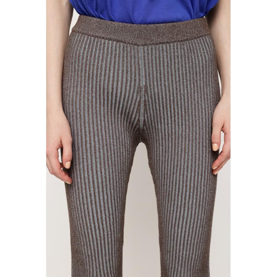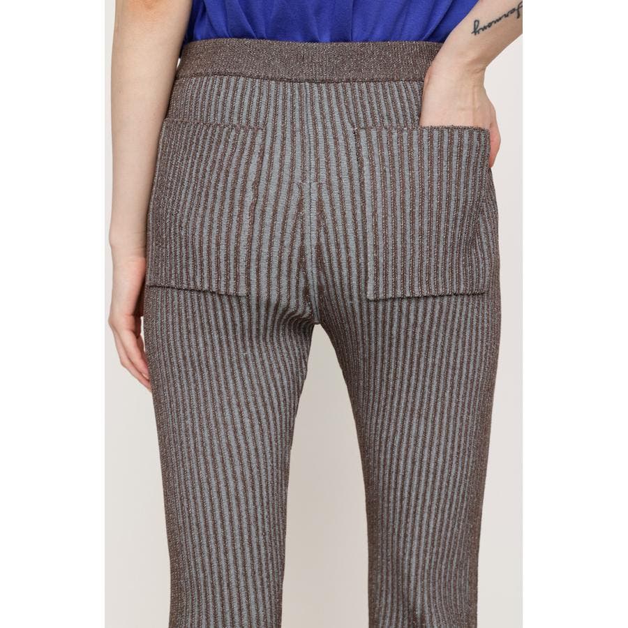 裏と表の糸が配色になってるニットパンツ。裾に向かってフレアなシルエットなので美脚効果が期待できます。雰囲気がありながらベーシックな形なので、デイリーに使えるアイテム。
