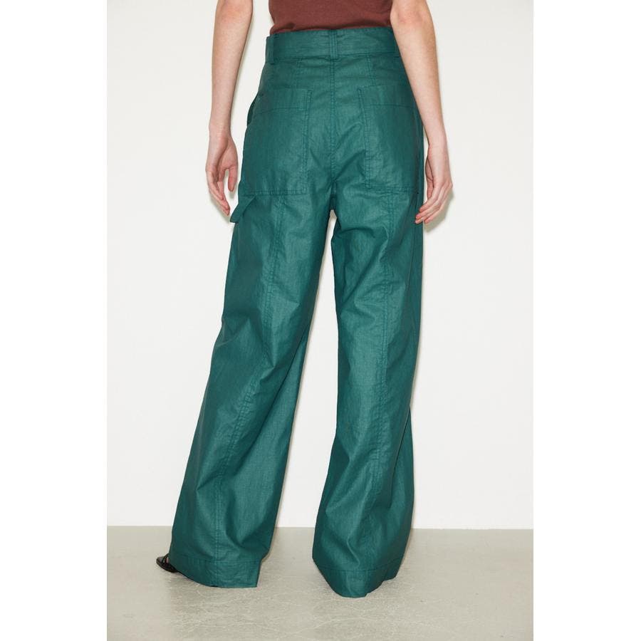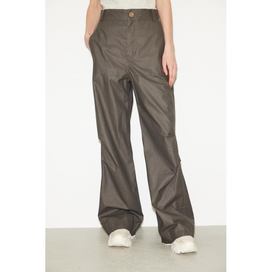 リネン混素材の表面にコーティング加工を施したワイドパンツ。コーティング加工を施したことでカジュアルダウンしすぎず大人っぽい印象に。シンプルなカットソーやシャツスタイルまで使いまわしの効くアイテムです。