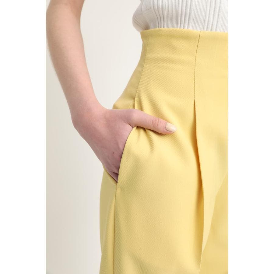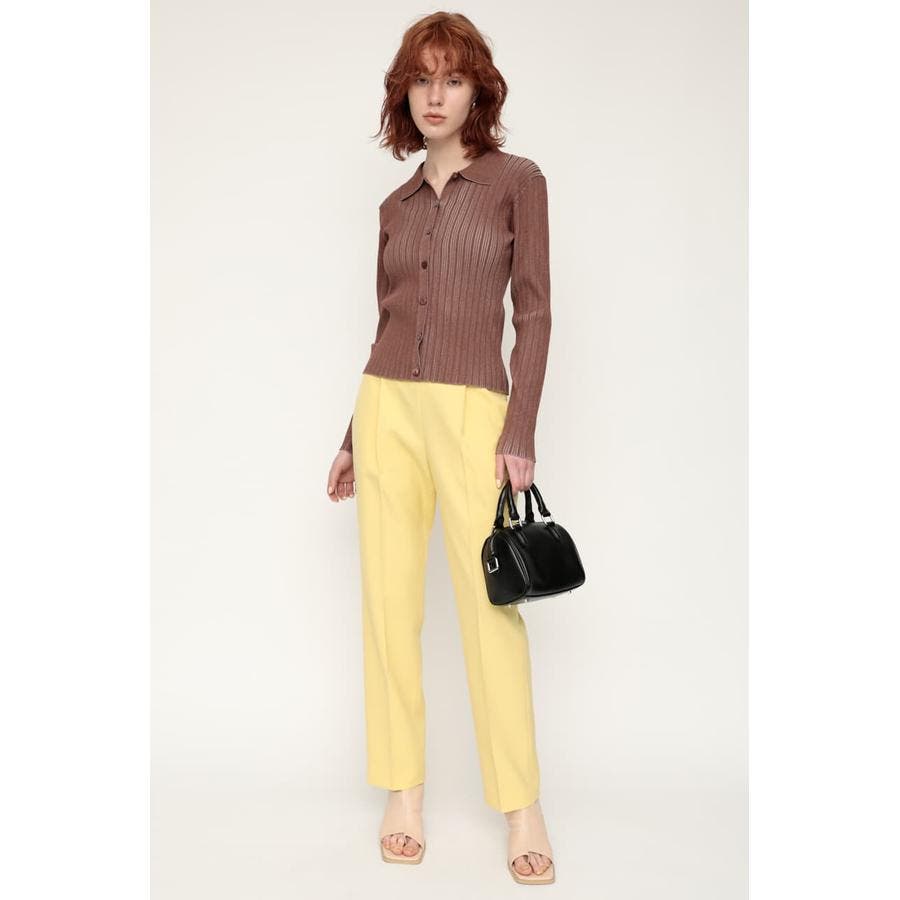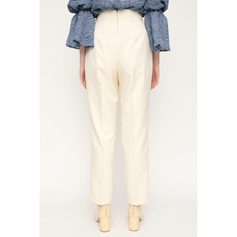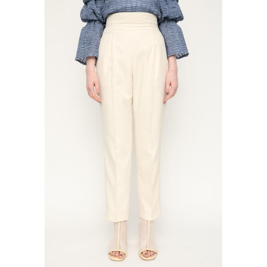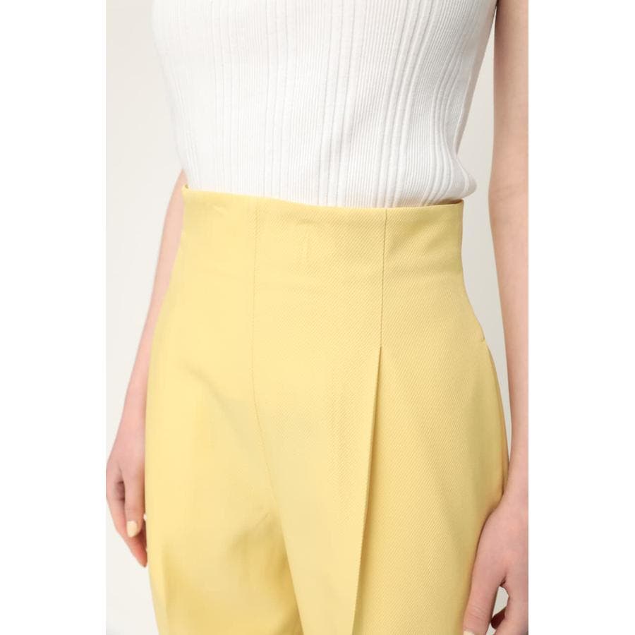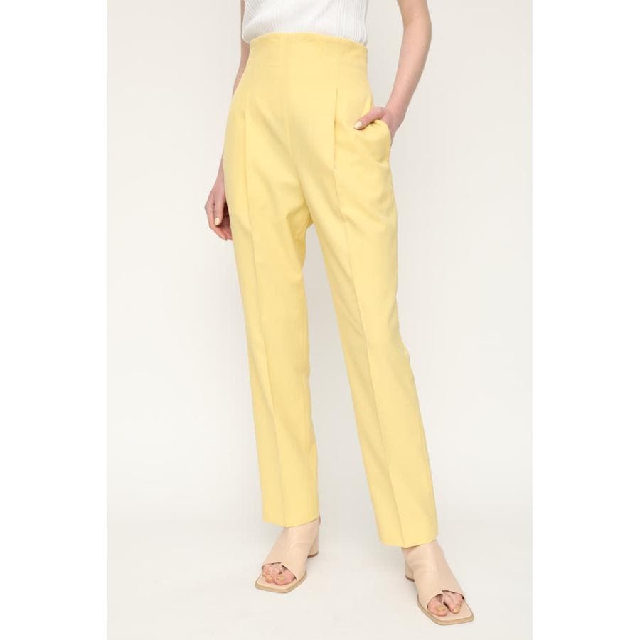 足先に向かって細くなるペグパンツ。脚のシルエットがきれいに出るアイテムです。ハイウエストシルエットにより脚長効果もありながら、ウエストがシェイプされたデザインなのでスタイルアップが期待できます。取り入れるだけで春らしいコーデが完成するイエローとアイボリーがオススメ。