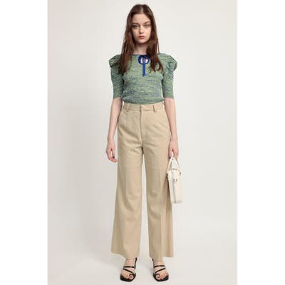 ライトなスーツ地を使用したワイドストレートのトラウザー。女性が着用しても固くなりすぎない落ち感の出るシルエットがポイント。スーツ地のパンツを履き慣れない方でもさらっと着こなせるアイテムです。シーズンを問わず使えるベーシックカラーには、アクセントカラーを持ってくる着こなしがおすすめ。同素材でジャケット(030FSA30-1670)、ベスト(030FSA30-1860)、ショートパンツ(030FSA31-1680)のご用意があり、ご自身のスタイルに合ったセットアップが選べます。