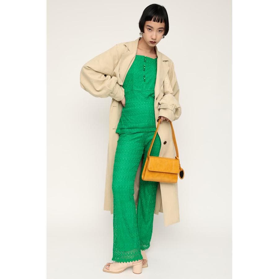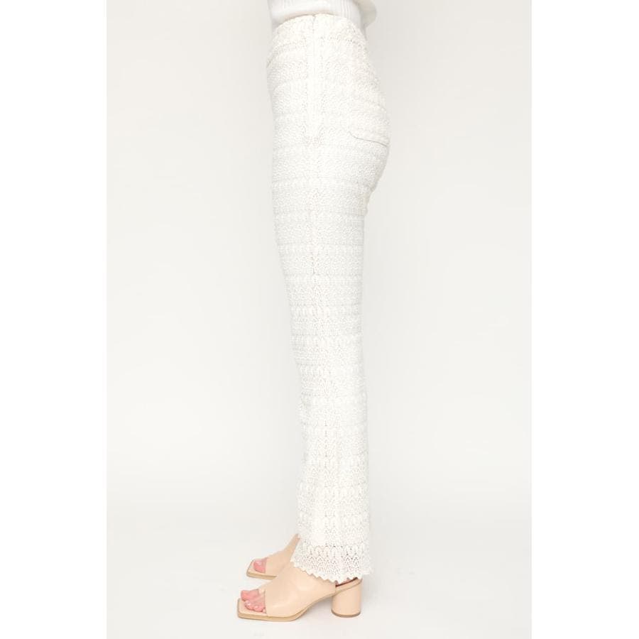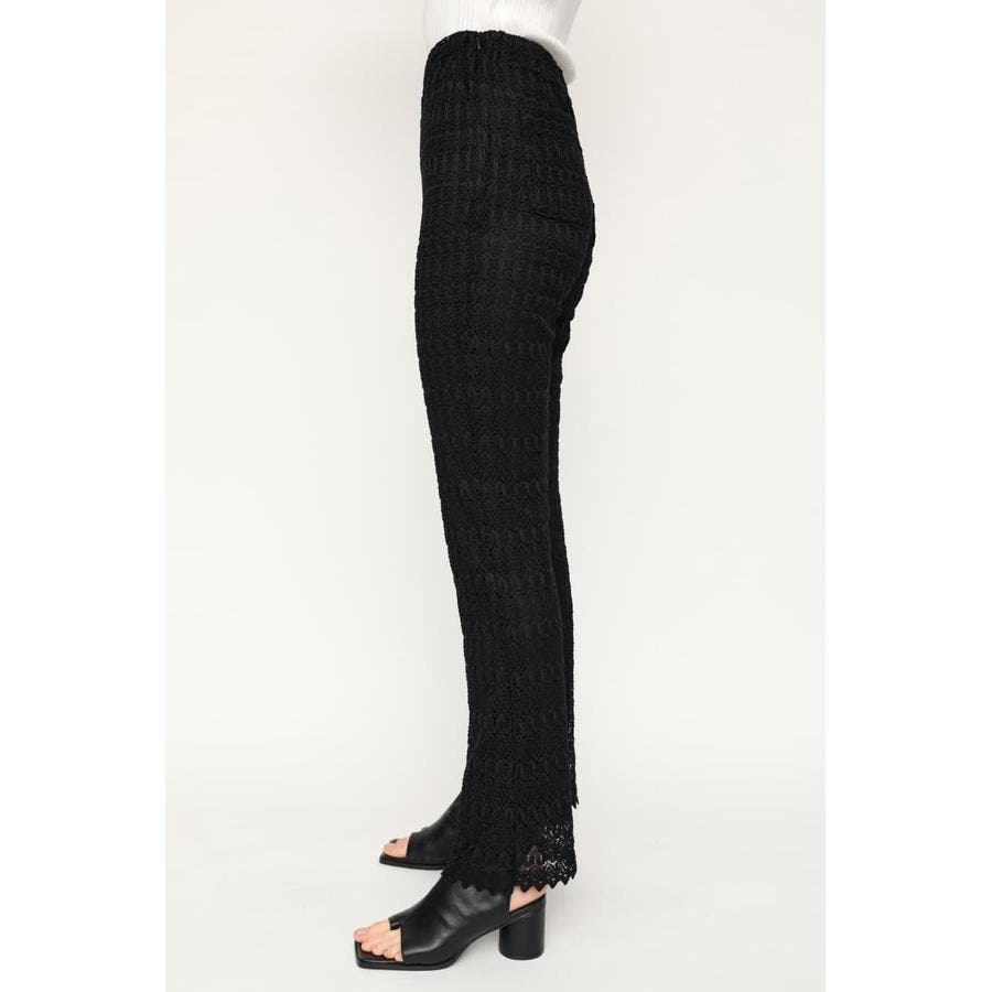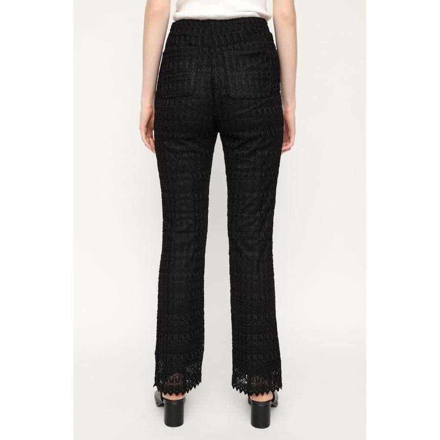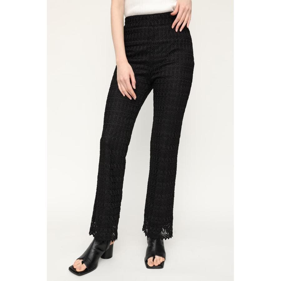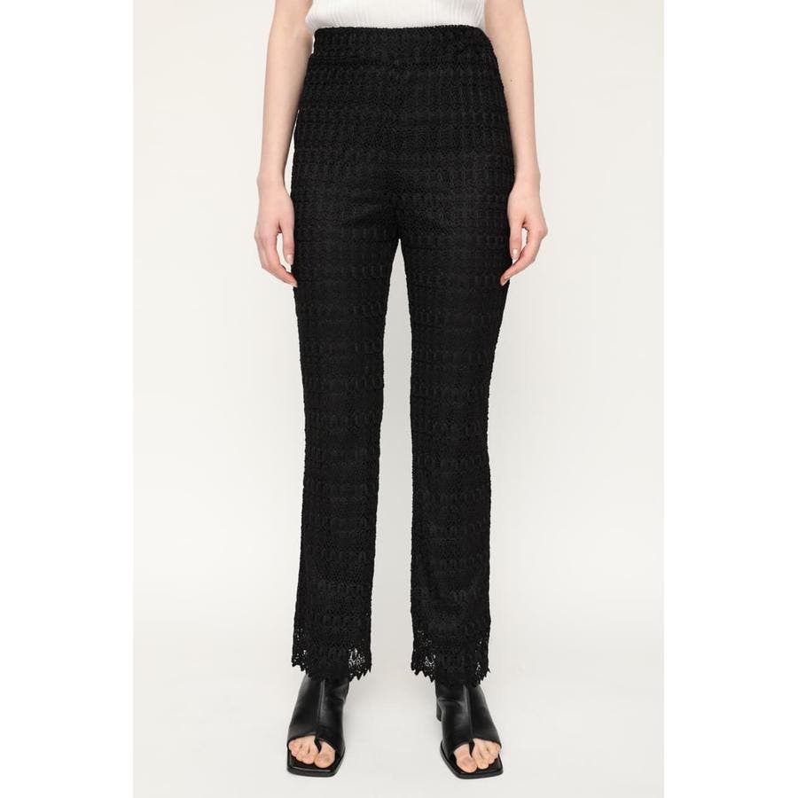 春を感じられるストレッチの効いたレースを使用したフレアパンツ。程よい太さで膝上を細くしているシルエットなので、足をきれいに見せてくれます。シンプルなカットトップスを合わせるだけで様になるアイテム。同シリーズのトップス(030FSY80-0930)とセットアップで合わせるスタイリングも今季おすすめです。