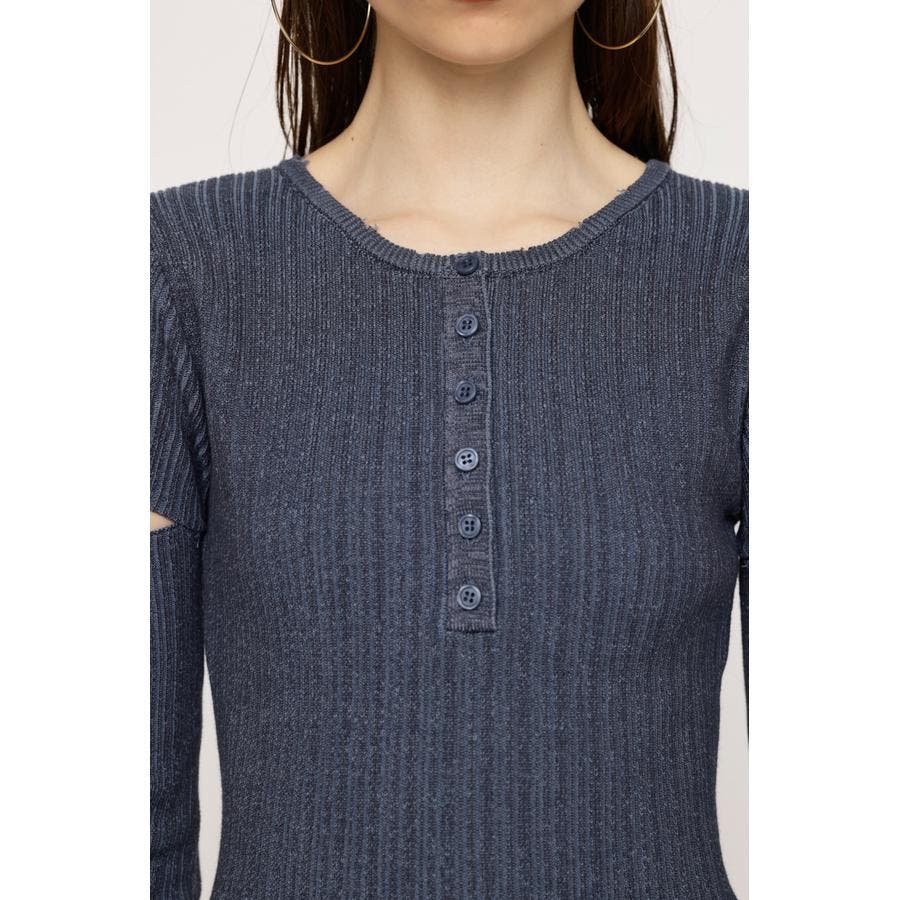 ■POINT:程よい肉感の2色配色リブの編み地は、ムラ感をプラスし、よりラフな印象に。襟や裾にクラッシュを取り入れ、カジュアルなアイテムに仕上がっています。