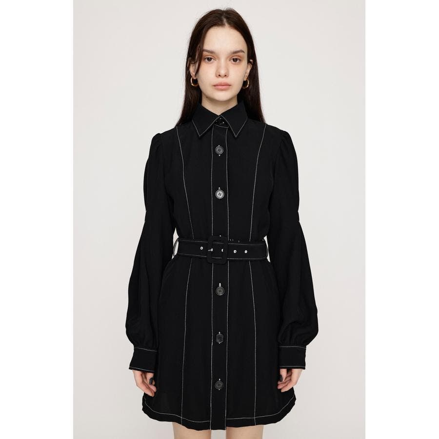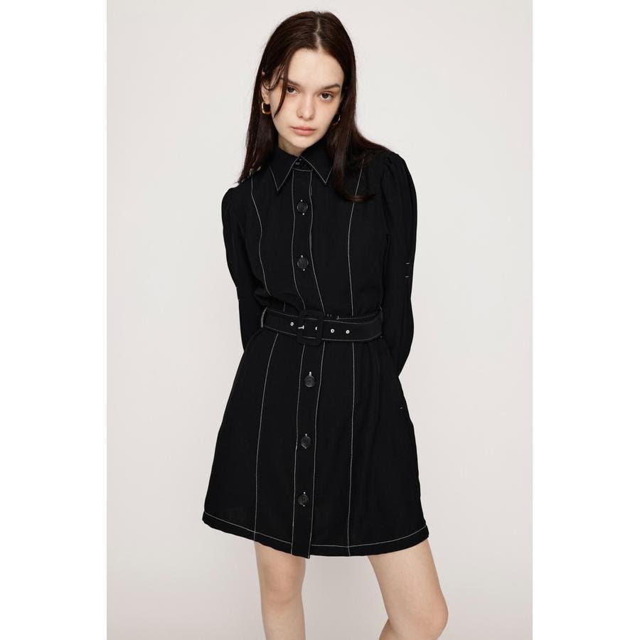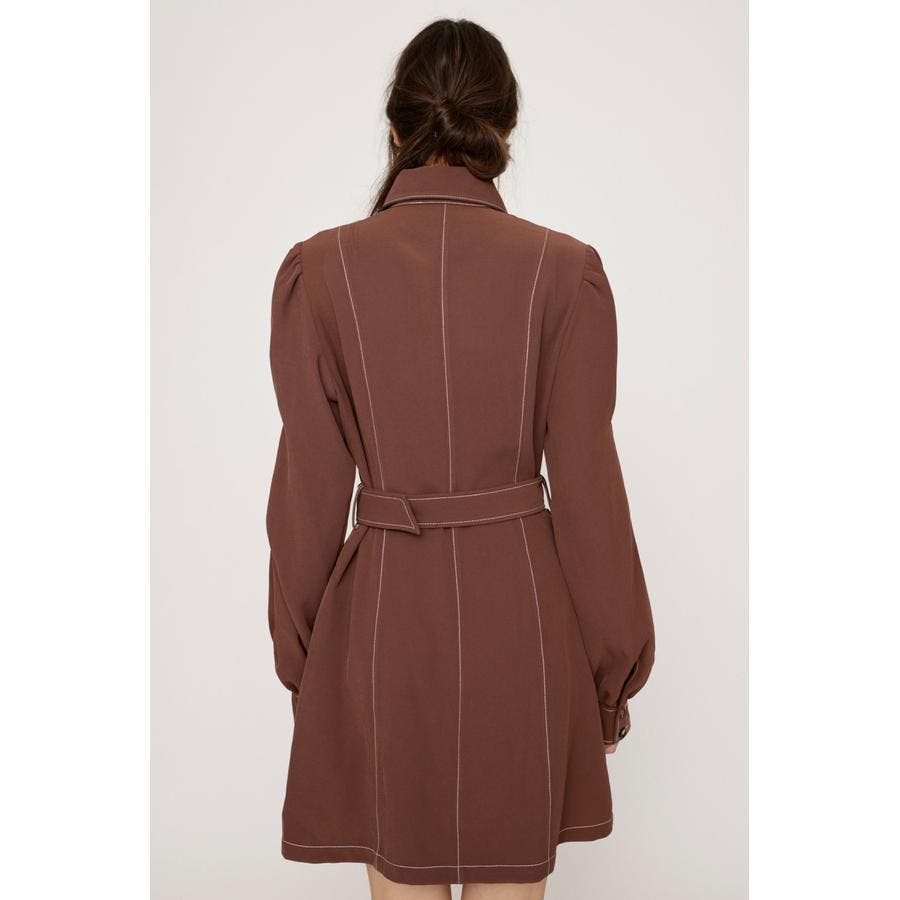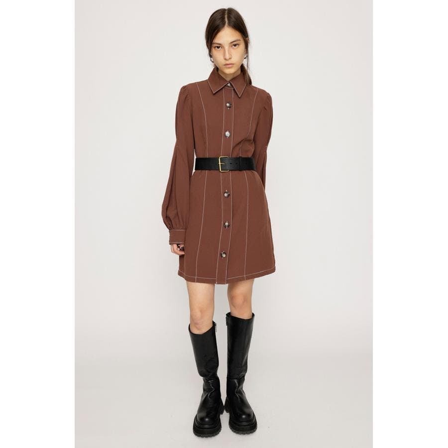 ■POINT:ベルト付きのパフスリーブミニワンピース。配色のステッチが可愛らしい形をカジュアルに見せてくれます。ベーシックなブラックと秋っぽいブラウンの2色展開です。
