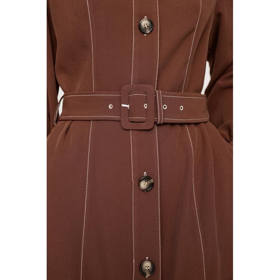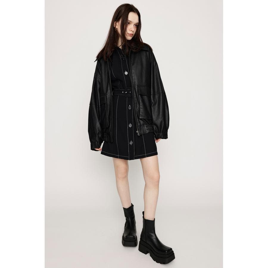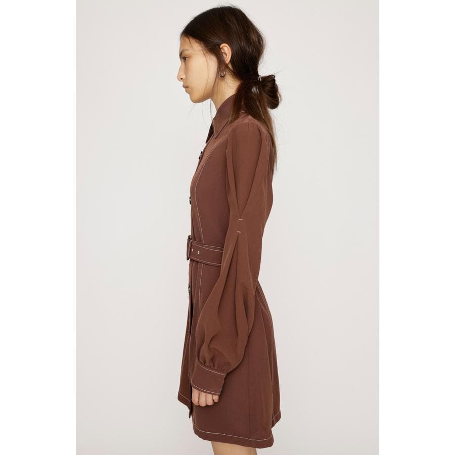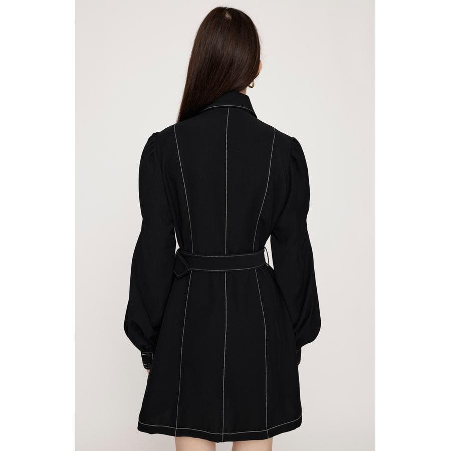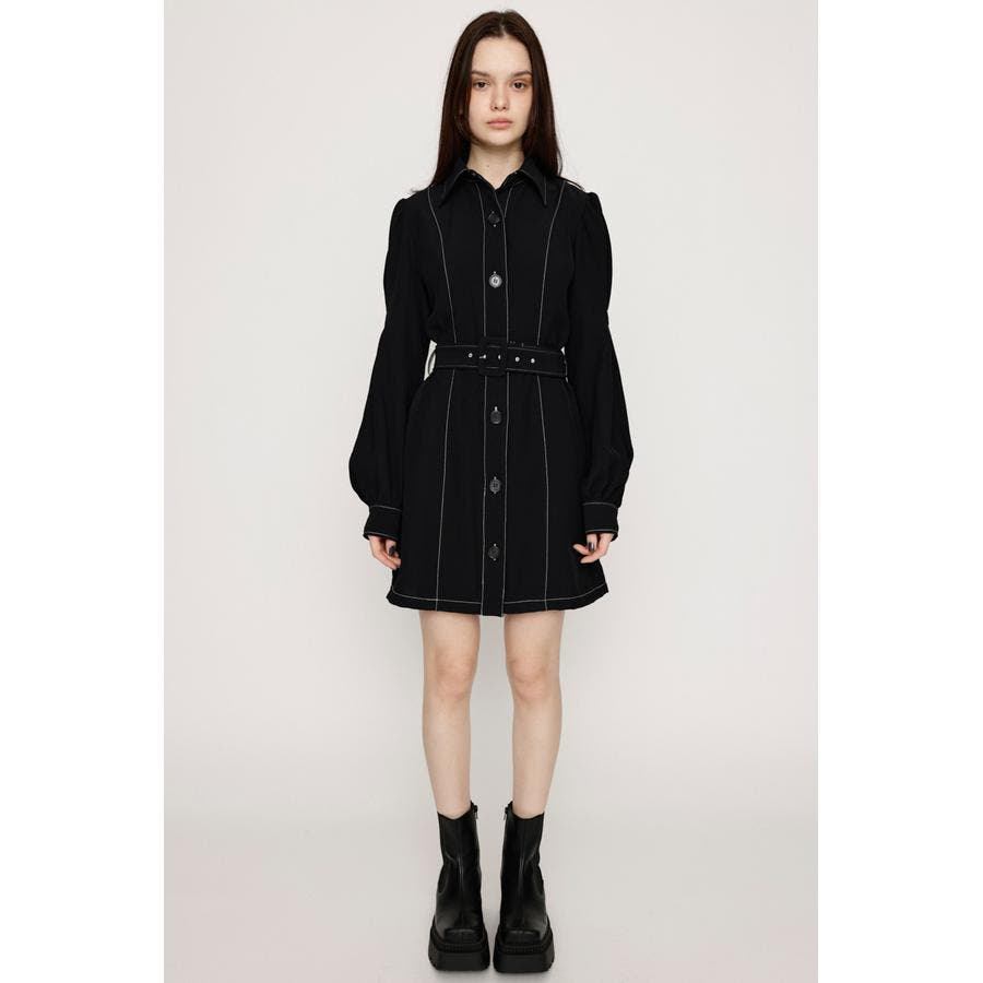 ■POINT:ベルト付きのパフスリーブミニワンピース。配色のステッチが可愛らしい形をカジュアルに見せてくれます。ベーシックなブラックと秋っぽいブラウンの2色展開です。