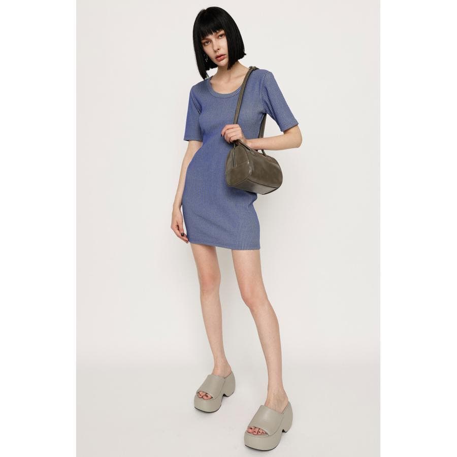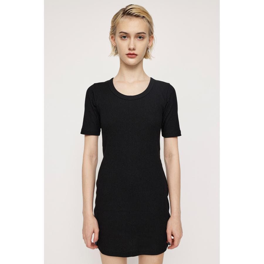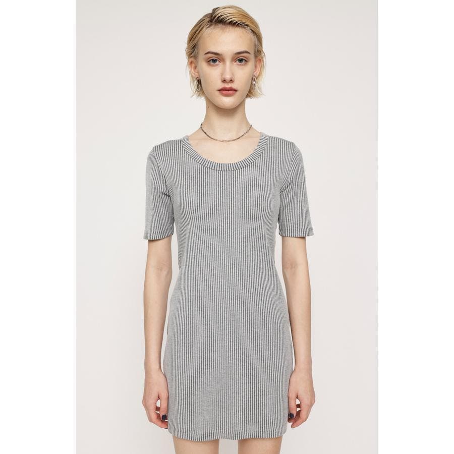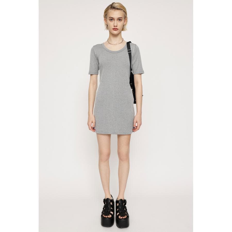 ■POINT:配色リブが目を惹くカットリブミニワンピース。