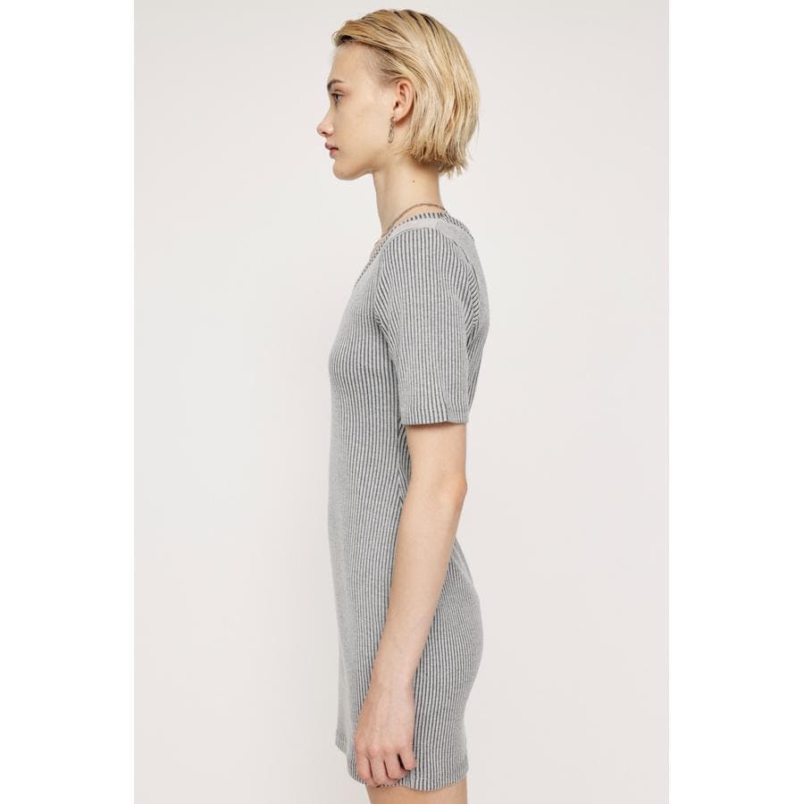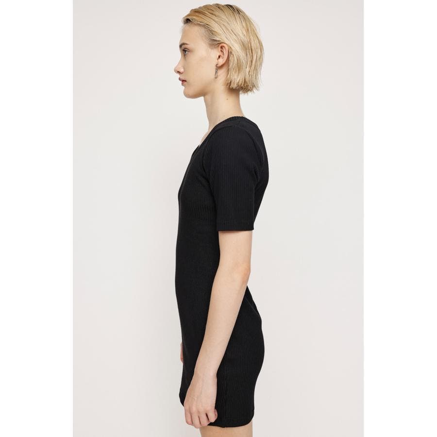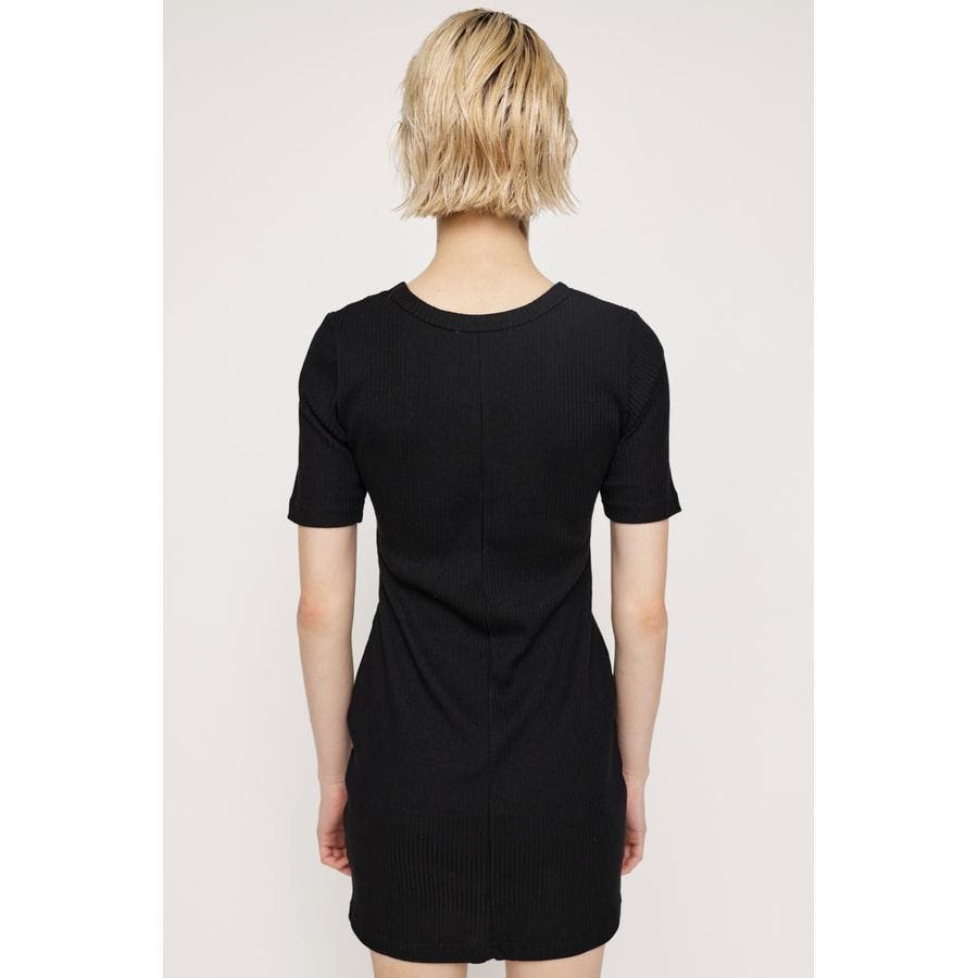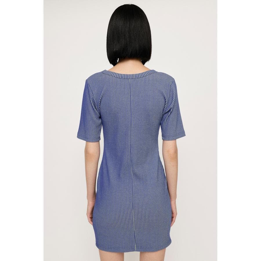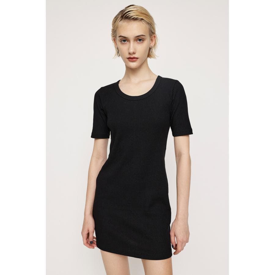 ■POINT:配色リブが目を惹くカットリブミニワンピース。