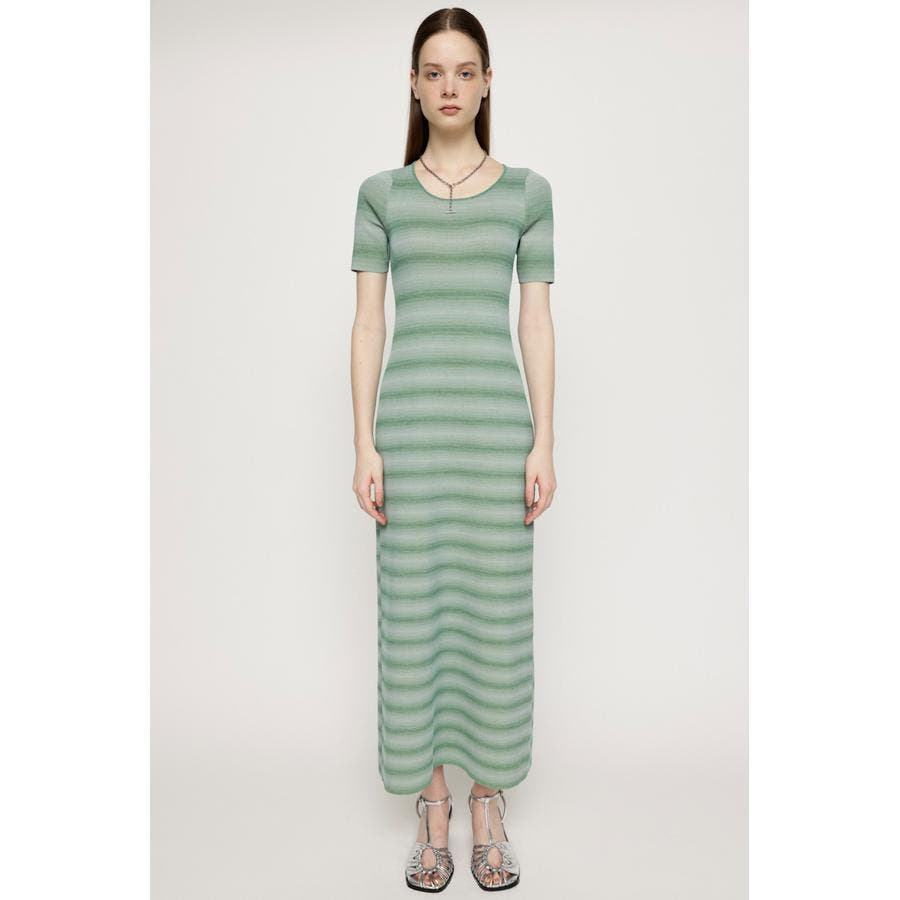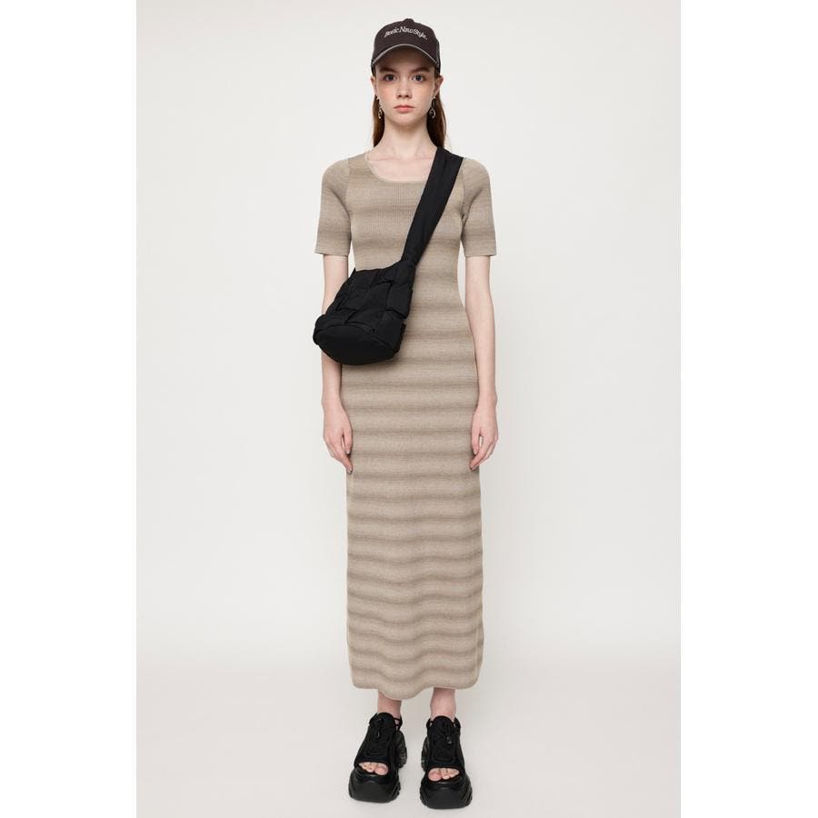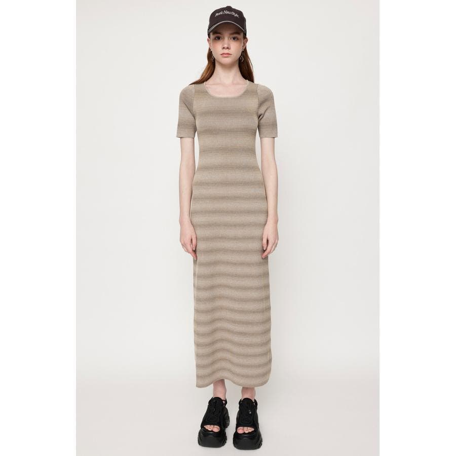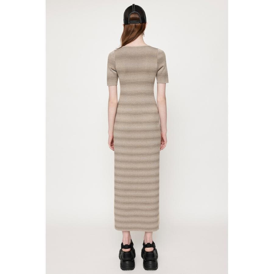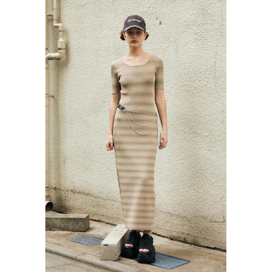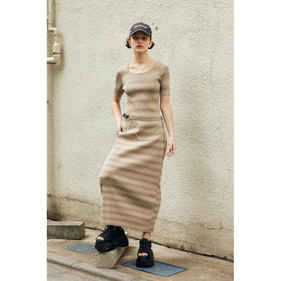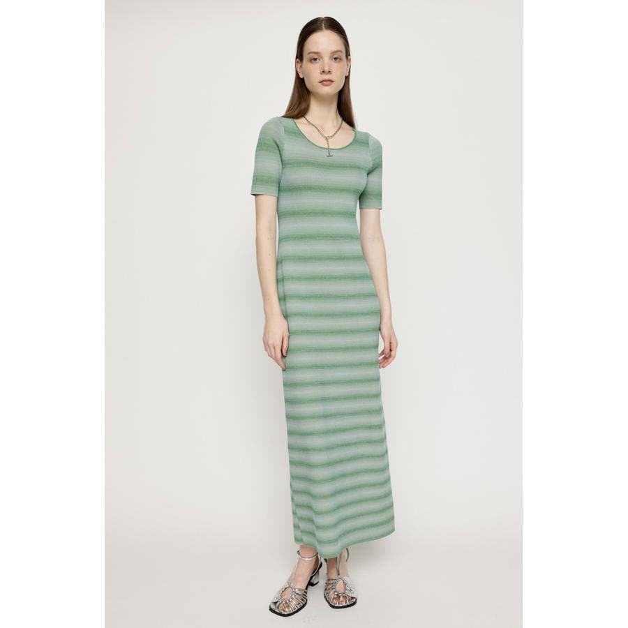 ■POINT:滲んだようなボーダーが目を惹くロングワンピース。程よく体にフィットし、スタイルアップ効果も期待できます。